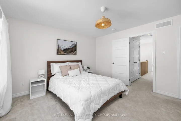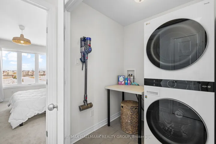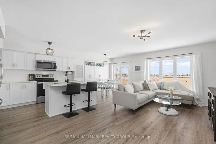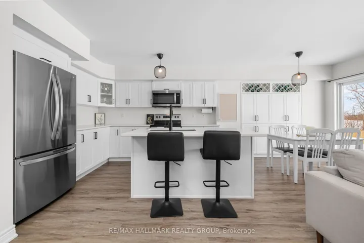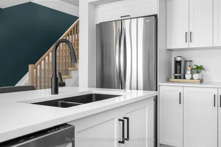 +"PublicRemarks": "Welcome to this beautifully maintained 2022-built end-unit townhome offering exceptional privacy with no rear neighbours and no direct side neighbour. With 3 bedrooms, 2.5 bathrooms, and a finished basement, this home blends modern style with everyday functionality. The thoughtfully designed main level features an open-concept layout ideal for both entertaining and family living. The classic white kitchen is complemented by quartz countertops, black hardware, a spacious island with breakfast bar, and custom built-in pantry cabinetry for added storage and organization. Luxury vinyl flooring runs throughout the main level and continues into the finished basement for a cohesive and contemporary feel. Upstairs, the primary suite offers a relaxing retreat complete with a beautifully designed ensuite featuring a double sink vanity and a custom built-in walk-in closet. Two additional bedrooms, a full main bathroom, and convenient second-floor laundry complete the upper level. The finished basement expands your living space with a comfortable family room and a newly added wet bar-perfect for hosting guests or creating the ultimate movie-night setup. Located within walking distance to shops and restaurants, this home offers the perfect balance of privacy, style, and convenience-simply move in and enjoy."