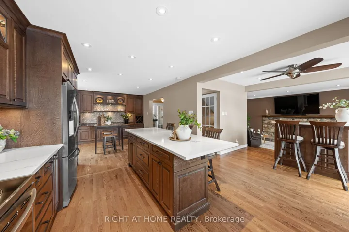 +"PublicRemarks": "Welcome to this exceptional home in the heart of prestigious Kanata Lakes! Perfectly positioned backing onto greenspace with breathtaking open views. This elegant 4-bedroom, 4-bath detached home offers refined living, sophisticated updates, and a backyard retreat designed for both relaxation and entertaining.The beautifully renovated kitchen is the centerpiece of the home, showcasing quartz countertops, timeless finishes, and an effortless flow into the family living spaces - ideal for hosting in style. A warm and inviting family room with wood-burning fireplace adds character and charm, while the versatile front living room offers the perfect space for a private office or formal sitting area. Upstairs, the expansive primary suite is a true sanctuary. Featuring two closets and a spa-inspired ensuite complete with a freestanding soaker tub, dual vanities, and a glass-enclosed shower, this retreat is designed for comfort and indulgence. Three additional spacious bedrooms and full bathroom complete the upper level.The fully finished lower level elevates the home even further with a generous recreation room, gas fireplace, stylish wet bar with wine fridge, a flexible bonus room ideal for a gym or hobby space, full bathroom, and abundant storage. Step outside to your private resort-style backyard featuring an in-ground salt water pool, hot tub, and mature landscaping - all set against the serene backdrop of a golf course greenspace. The front yard includes a convenient irrigation system. A rare opportunity to own a refined home in one of Kanata's most sought-after communities."