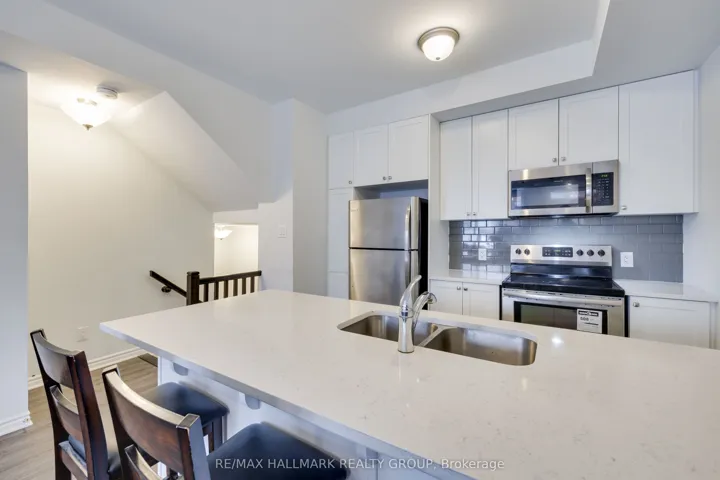 +"PublicRemarks": "Welcome to this beautifully upgraded 2-bedroom, 1-bathroom 2-storey townhome for lease in the highly sought-after Wateridge Village - Rockcliffe community. Thoughtfully designed with modern finishes and a functional layout, this home offers stylish, low-maintenance living in a prime location. The bright main level showcases elegant luxury vinyl flooring and an inviting open-concept living space filled with natural light. The contemporary kitchen is a true highlight, featuring quartz countertops, stainless steel appliances, and a convenient breakfast bar-perfect for everyday living and entertaining alike. The lower level offers two well-sized bedrooms, a full 4-piece bathroom, and a dedicated laundry room for added comfort and convenience. One outdoor parking space is included. Ideally located just steps from the NCC Aviation Parkway and minutes to downtown Ottawa, Montfort Hospital, CSE, CSIS, CMHC, Blair LRT Station, Highways 174 and 417, Beechwood Village, and St. Laurent Shopping Centre, this home provides exceptional access to parks, cycling paths, transit, shopping, and dining. Excellent opportunity to live in one of Ottawa's most vibrant and growing communities."