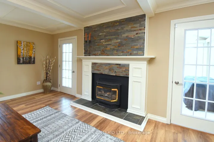 +"PublicRemarks": "Lovely 3-bedroom home with 2 full baths and 2 powder rooms set on a private, expansive 1.5-acre treed country lot, surrounded by nature at every turn. Large picture windows throughout flood the home with natural light and offer peaceful views from nearly every room. The spacious primary suite features a fireplace, 3-piece ensuite, and walk-in closet with convenient laundry. A second bedroom offers its own 3-piece ensuite and walk-in closet, while the third bedroom provides flexible space for family, guests, or home office use. The open main floor offers generous living space, including a powder room and private office. The large country kitchen features abundant cabinetry, bonus pantry /coffee service area, and dinette with French doors leading to a multi-level deck. The sunken great room with vaulted ceilings, stone feature wall, and gas fireplace creates a warm gathering space with a walkout to the private yard. A formal living room with coffered ceiling and gas fireplace and a large, three-season sunroom add additional living and entertaining options. Inside entry from the double garage adds everyday convenience. The fully finished basement provides additional living space with carpeted floors, a 2-piece bath, and a hobby/bedroom area. Step outside to a private backyard oasis featuring an in-ground pool, beautifully landscaped grounds, and a solid wood gazebo with metal roof for shaded enjoyment. This home is tastefully refreshed in neutral tones and move-in ready. RSA."