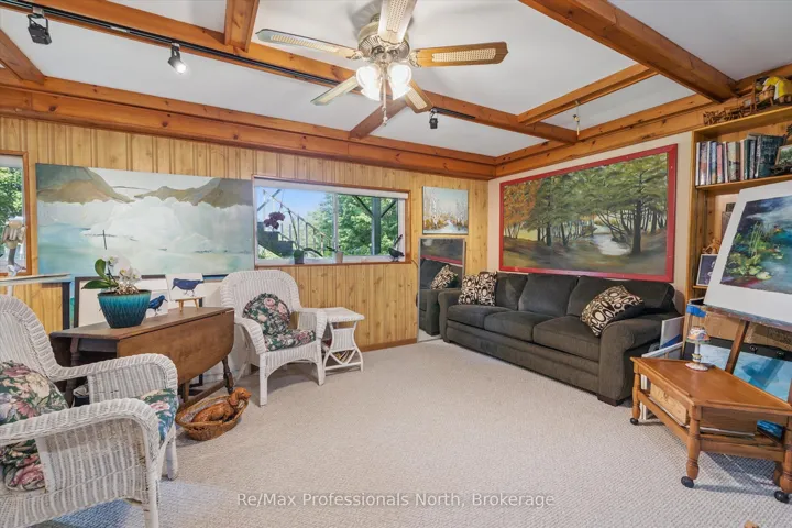 +"PublicRemarks": "Your Riverfront Retreat Awaits! Set on a deep, tree-lined 0.5 acre lot with 115 feet of coveted frontage on the sunny south side of the Muskoka River, this spacious 2+1 bedroom bungalow offers approximately 2,100 square feet of finished living space designed for year-round comfort, relaxation, and enjoyment. Located just 12 minutes to downtown Bracebridge. From the moment you step inside the open-concept main floor creates a sense of welcome. The bright and airy living room with large windows that frames tranquil river views while a cozy gas fireplace anchors the space perfect for gathering on cooler evenings. The eat-in kitchen is a true heart of the home, featuring a central Breakfast bar island, walk-in pantry and ample room for casual family meals or creative cooking sessions. Both main floor bedrooms are generously proportioned. The primary suite is a private retreat with ensuite bath, a 36 sq. ft. walk-in closet and a walk-out to your own secluded deck, ideal setting for your morning coffee or evening stargazing. A screened-in deck extends your living space for three seasons allowing you to enjoy surrounding nature in comfort. The fully finished lower level expands the home's versatility with a cozy family room, a large recreation room with a built-in bar for entertaining, a third bedroom for guests or a home office, and a large laundry room with walkout access to the yard. The beautifully treed lot gently slopes to the water's edge, where a private dock awaits for swimming, boating, paddling or sun bathing in peaceful surroundings. The 1.5-size detached garage offers additional potential for a workshop or additional storage. Whether you're seeking for a full-time residence or a four-season getaway, this property offers the quintessential Muskoka lifestyle, riverfront living, generous entertaining, and surrounded by nature."