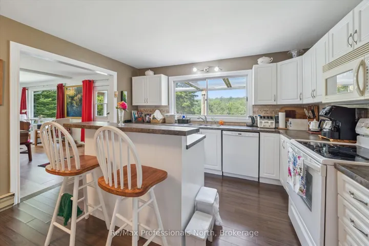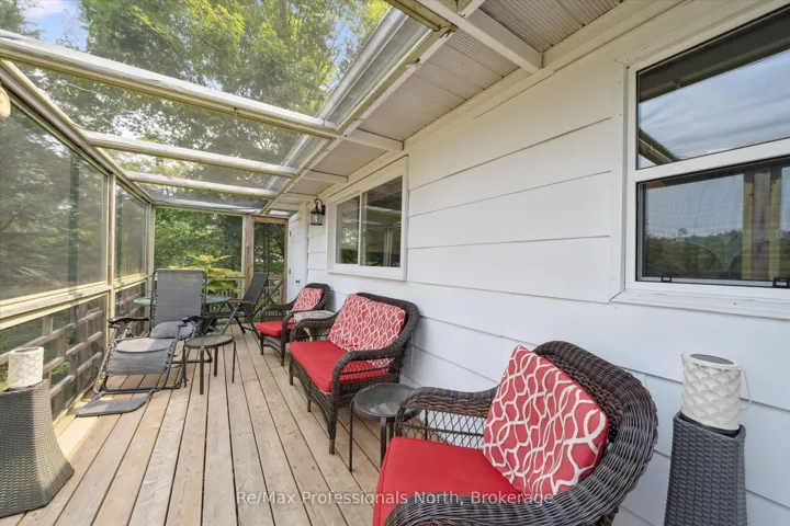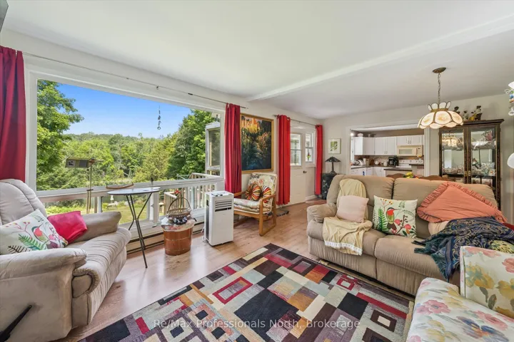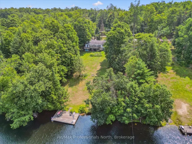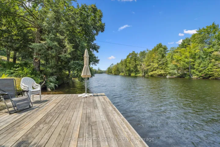 +"PublicRemarks": "NEW PRICE!!! Your Riverfront Year Round Retreat Awaits! Set on a deep, tree-lined 0.5 acre lot with 115 feet of coveted frontage on the sunny south side of the Muskoka River, this spacious 2+1 bedroom bungalow offers approximately 2,100 square feet of finished living space designed for all season comfort, relaxation, and enjoyment. Located just 12 minutes to downtown Bracebridge. From the moment you step inside the open-concept main floor creates a sense of welcome. The bright and airy living room with large windows that frames tranquil river views while a cozy gas fireplace anchors the space perfect for gathering on cooler evenings. The eat-in kitchen is a true heart of the home, featuring a central Breakfast bar island, walk-in pantry and ample room for casual family meals or creative cooking sessions. Both main floor bedrooms are generously proportioned. The primary suite is a private retreat with ensuite bath, a 36 sq. ft. walk-in closet and a walk-out to your own secluded deck, ideal setting for your morning coffee or evening stargazing. A screened-in deck extends your living space for three seasons allowing you to enjoy surrounding nature in comfort. The fully finished lower level expands the home's versatility with a cozy family room, a large recreation room with a built-in bar for entertaining, a third bedroom for guests or a home office, and a large laundry room with walkout access to the yard. The beautifully treed lot gently slopes to the water's edge, where a private dock awaits for swimming, boating, paddling or sun bathing in peaceful surroundings. The 1.5-size detached garage offers additional potential for a workshop or additional storage. Whether you're seeking for a full-time residence or a four-season getaway, this property offers the quintessential Muskoka lifestyle, riverfront living surrounded by nature."