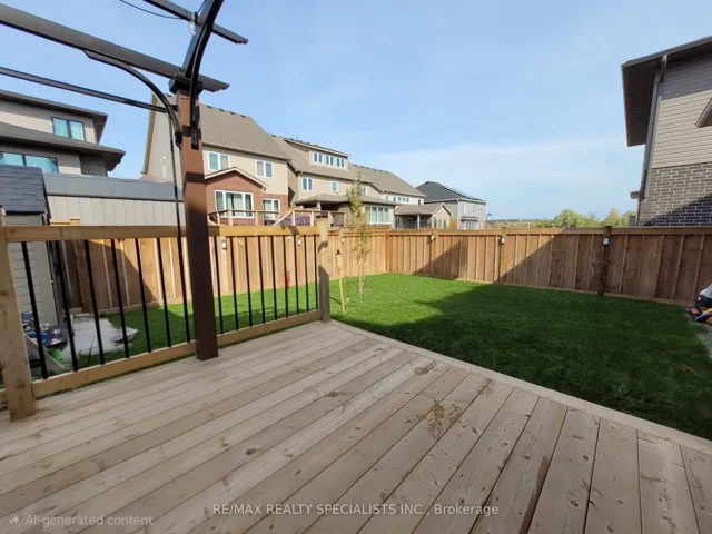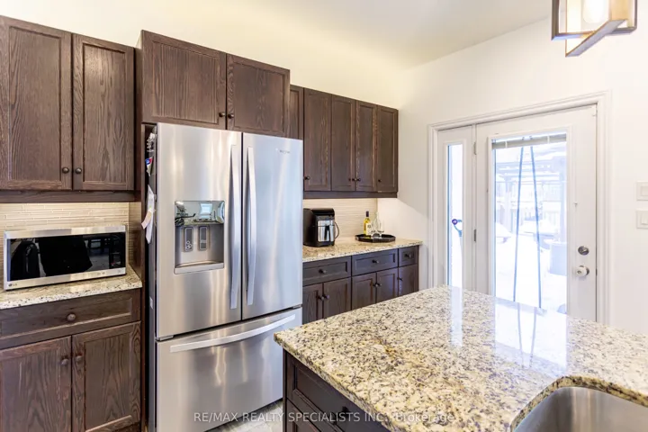 +"PublicRemarks": "Welcome to this stunning 4-bedroom, 4-bathroom home with a professionally finished basement, located on a premium lot in one of Guelph's top-rated school areas. This thoughtfully upgraded home blends modern comfort, luxury finishes, and energy-efficient living. The bright, open-concept main floor features a gourmet kitchen with granite countertops, a large pantry, high-efficiency appliances, and upgraded vents. The family room is designed for comfort and style with an electric fireplace, custom entertainment unit, and motorized blinds. Upstairs, the home offers hardwood flooring, oak staircase with hardwood treads, and upgraded ceiling lighting throughout. The powder room and ensuite are finished with elegant quartz countertops. The high-efficiency furnace, air conditioner, and heat pump ensure year-round comfort, while the EV charger Wiring only in the garage and solar-ready wiring make this home future-proof and energy conscious. The professionally finished basement adds incredible versatility, featuring 1 bedroom, a den, a full 4-piece bathroom, and a storage room-perfect for guests, extended family, or a home office. Step outside to a beautifully designed backyard with a deck, pergola, and storage shed, ideal for entertaining and relaxing. The home also offers no sidewalk, providing extra parking and privacy. This exceptional property offers luxury, efficiency, and space in one of Guelph's most desirable neighborhoods-a true move-in-ready dream home."