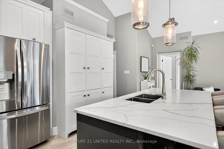 +"PublicRemarks": "This beautifully appointed 2+2-bedroom, 3 bath raised bungalow exudes elegance. The main living area features hard surfaces throughout with a bright, open concept living space, with vaulted ceiling, that combines the living room, dining room and kitchen with natural separations provided by the three-sided gas fireplace and serviced kitchen island with room for seating. Spacious kitchen with SS appliances including double oven and pantry nearby. The living room exits onto the back patio for convenient hosting or outdoor cooking in a very private backyard. The laundry is located on the main floor, and all four bedrooms are generously sized with a primary that features a 4-piece ensuite and walk in closet. The lower level has ample storage room, a third 4-piece bathroom, a second gas fireplace in the rec room and nine-foot ceilings providing lots of air space. Extra bonus is an installed Generlink with generator/cable. Pre-inspected for your convenience. Don't miss your chance to make this gem your own!"
