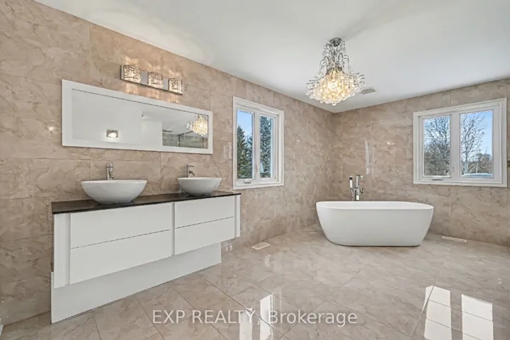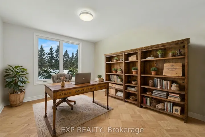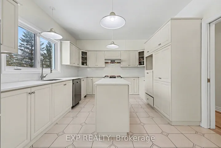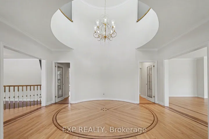 +"PublicRemarks": "Welcome to your private estate in the heart of Rideau Forest, set on approximately 2 acres surrounded by mature trees and manicured grounds. Offering over 5,500 sq ft above grade, this impressive all brick two story home features 5 bedrooms and 7 bathrooms, with every bedroom complete with its own ensuite. A grand vaulted foyer sets the tone, leading into expansive principal rooms designed for both everyday living and large scale entertaining. The formal dining room comfortably accommodates twenty guests, while the kitchen and breakfast area overlook the rear gardens and inground Gunite pool, creating a seamless indoor outdoor connection. The main level includes multiple living spaces, a den or optional bedroom, and elegant finishes throughout including hardwood flooring and crown moulding. Upstairs, the primary suite is a retreat of its own, featuring a marble appointed 5 piece ensuite, generous walk in closet, and a private sitting area framed by oversized windows. The fully finished lower level adds exceptional versatility with a sprawling recreation room, media space, full bath, additional bedroom, and direct access from the garage, ideal for extended family or guests. Car enthusiasts and collectors will appreciate the rare dual triple car garages with inside entry, offering parking for six vehicles. Major updates include roof, windows and exterior doors replaced in 2018, along with two high efficiency furnaces, two A/C units, and two hot water tanks. Outdoors, enjoy a 36' x 17' inground pool enclosed by elegant wrought iron fencing, expansive interlock, and lush lawns that offer both privacy and presence. A distinguished residence in one of the city's most sought after estate communities."