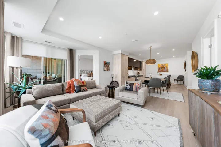 +"PublicRemarks": "Welcome to one of the most prestigious and desirable locations in the area, The Elora Mill Residences. This suite is a rare find, there are only 2 suites like this on in the development and it comes with 2 PARKING SPACES. The open concept living space features a very spacious modern kitchen with amazing custom cabinetry, a huge island with waterfall edge quartz countertops, and seating at the island. There is also a nice dining area, conveniently located between the kitchen and main living area. The living room is bright and airy, has large windows giving you lots of natural light, and has a walkout leading to a covered balcony overlooking the outdoor patio area and a view of the Grand River. The primary bedroom has a large walk-in closet with custom built cabinetry, a huge ensuite with double vanity, free standing tub, and a large separate glass shower. There is a second bedroom and main bathroom, perfect for family or friends when visiting. This building has resort like amenities, a concierge service, the lobby coffee bar, a resident's lounge area, a private dining/function room, a gym, yoga studio, an outdoor patio area with fire pits and lots of seating areas, and an amazing private swimming pool with a huge sunbathing area. The location is key, just a short stroll from Elora's shopping, coffee shops, restaurants, walking trails, parks etc. The unit also comes with a storage locker, one underground parking spot and one outdoor parking spot, electric custom blinds at the windows, high end built in kitchen appliances and in suite laundry. This really is an amazing building in the village of Elora. Stunning views year-round of the Grand River, the Elora Mill, and the Elora Gorge."