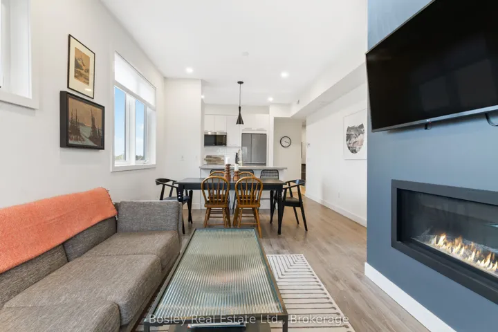 +"PublicRemarks": "This modern top-floor corner suite offers two parking spots and is filled with windows that flood the space with natural light. Featuring 3 bedrooms and 2.5 bathrooms, Unit 307 delivers the perfect base to experience everything the Blue Mountains lifestyle has to offer. The open-concept living and kitchen area is made for entertaining, anchored by a stone gas fireplace with a beautiful wood mantel. Step out to the spacious balcony-ideal for BBQs and relaxed evenings. The kitchen showcases a quartz waterfall countertop and backsplash, integrated appliances, and a generous breakfast bar. The primary bedroom features a stylish ensuite with an oversized glass walk-in shower. Owners enjoy access to Mountain House's Zephyr Springs oasis, complete with a year-round heated outdoor pool, seasonal cold pool, sauna, fitness room, and the Apres Lodge with its indoor/outdoor fireplace. Embrace four-season living surrounded by scenic views and endless outdoor adventure."