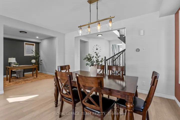 +"PublicRemarks": "Set on a quiet street across from the park, this expertly upgraded home offers the space & flexibility today's families need. In the heart of Half Moon Bay - a vibrant, family-first community, this home offers refined living w/o compromise. A sunlit foyer w/ custom wall detailing sets the tone. The open-concept main level boasts soaring 9' ceilings, engineered hdwd & luxurious tile accents, anchored by a striking floor-to-ceiling stone fireplace creating an elevated focal point for everyday living & entertaining. The gourmet kitchen at the heart of the home impresses w/ quartz countertops & backsplash, extended ceiling-height cabinetry, deep pot drawers, pull-out pantry & lg island w/ seating for four. High-end s/s appliances, direct patio access & seamless flow to dining & great rooms make hosting effortless. A dedicated main-floor office/den, powder room & oversized mudroom w/ walk-in closet & garage access add exceptional day-to-day functionality. Upstairs, a dramatic hardwood spiral staircase, flooded w/ nat. light, leads to a thoughtfully designed bedroom level. The primary suite offers a true retreat w/ 2 walk-ins & spa-inspired 5-pc ensuite feat. dbl vanity, upgraded tile & glass shower, soaker tub & huge windows. Three add'l generous beds each boast walk-in closets, one w/ pvt ensuite & two sharing a Jack & Jill bath. A convenient upper-level laundry w/ sink completes the level. A finished, carpet free, lower level offers versatility: home theatre pre-wiring, wet bar rough-in, 3-pc bath + ample storage-ideal for guests, teens, or multigenerational living. Outside, curated landscaping & hardscaping elevate the exterior w/ interlock lined drive, perennial gardens & spacious stone patio within a 7' high PVC fenced yard. Surrounded by parks, riverfront walking/biking paths + rec centres, shopping, dining, transit & easy hwy access, this home offers modern living in the heart of Barrhaven. A rare blend of luxury, comfort & flexibility designed to grow with you."