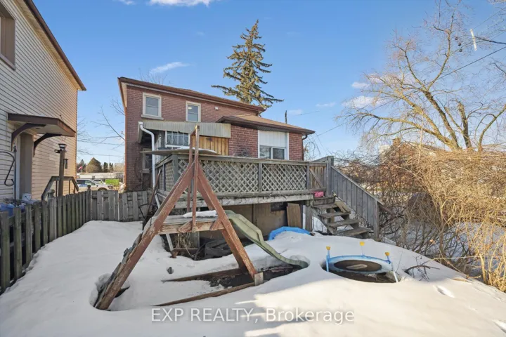 +"PublicRemarks": "Looking to expand your investment portfolio? This solid, brick two-storey offers options-it is currently configured as a duplex (one unit will be vacant end of April) but could easily be converted back to a single-family residence with the removal of one hallway wall. Upgrades include a durable Superior Steel Roof (2021-with 50 year warranty), upper deck redone (2025), Bradford natural gas power vent water heater (2021), windows (approx 2020), upstairs unit -paint, bathroom sink and toilet (2025). The main floor and upper units are both rented on a month-to-month basis with upstairs tenant leaving end of April, offering flexibility for owner occupancy. The main floor tenant is very good and takes care of lawn maintenance, gardens, and snow removal.This unit offers a living room, eat-in kitchen, bedroom, bathroom, office, and a storage room with access to the basment and attached garage/shed. This unit could use decor updates. Upstairs, you'll find a bright and welcoming unit with a living room, bedroom, hall closet/workspace, bathroom, and a sunny kitchen with access to a private deck. Heated by natural gas hot water boiler. Outside, enjoy a spacious backyard with mature trees, partially fenced, covered front porch, two storage sheds and parking for 3 cars. Walking distance to the downtown. Good rate of return at 6.5%. See summer photos."