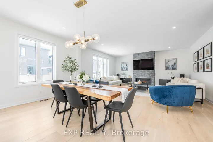 +"PublicRemarks": "Welcome to this stunning 2022-built Minto Nobel model, offering modern luxury, thoughtful upgrades, and exceptional living space. This beautifully finished home features 4+1 bedrooms and 5 bathrooms, ideal for growing families or those who love to entertain. The open-concept main level showcases hardwood flooring throughout, a stylish kitchen equipped with high-end Bosch appliances, a bright breakfast area, formal dining room, private den, and a welcoming family room anchored by a gas fireplace. Upstairs, a spacious loft with a second fireplace and balcony access provides an additional living area, while four generously sized bedrooms include three ensuites, one of which is a convenient Jack-and-Jill design. The fully finished basement expands the home's versatility with an additional bedroom, and ample space for recreation, guests, or a home office. Outside, the interlock front yard extends the driveway for extra parking, while the interlock backyard offers a stylish, low-maintenance outdoor retreat. Completing the home is a double-car garage with sleek epoxy floors, adding both durability and a polished touch. With upgrades throughout, this home blends comfort, elegance, and functionality in a beautifully designed modern space."