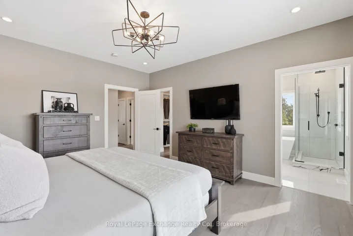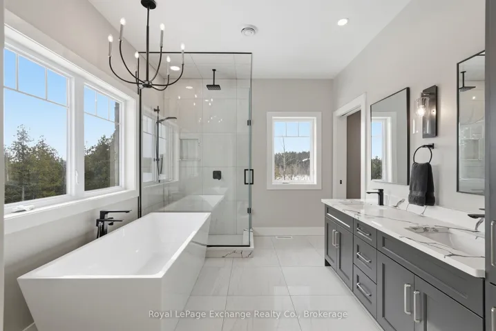 +"PublicRemarks": "Hidden amongst rolling forest, serene waterways, and winding nature trails, this exclusive country community is one of Grey County's best-kept secrets. Residents enjoy access to recreational lakes for swimming, kayaking, and fishing, along with scenic walking trails and a welcoming neighbourhood atmosphere where nature is part of everyday life. Here, evenings are spent watching the sunset over the water while privacy comes naturally on estate-sized lots - all just a short drive from the amenities of Hanover and Durham. Perfectly positioned on a 2.8-acre waterfront lot, this stunning custom-built bungalow offers over 4,200 sq ft of finished living space designed to embrace both the landscape and the lifestyle. The home's impressive full-stone exterior, soaring 10-foot ceilings, and expansive windows create a bright, elegant interior where natural views become part of every room. At the heart of the home, a gourmet kitchen with custom cabinetry, stone countertops, premium appliances, and a walk-in pantry opens seamlessly to the dining area and great room, where a striking stone fireplace anchors the space. Step out onto the covered deck overlooking the water and forest - the perfect place for morning coffee, sunset dinners, or simply relaxing in the peaceful surroundings. The main floor features three spacious bedrooms, including a serene primary retreat with a luxury ensuite, along with a dedicated home office and convenient main-floor laundry. Downstairs, the fully finished walk-out lower level adds exceptional versatility with heated floors throughout, additional bedrooms, a full bathroom, ample storage, and excellent in-law or guest suite potential. Working remote is effortless with Ehtel fibre internet with wired ethernet throughout. Also included is a full water treatment system, high-efficiency combi-boiler, and an oversized double garage with Trusscore paneling. Luxury, nature, privacy, and community - the lifestyle that awaits at 150 Louise Creek Crescent."