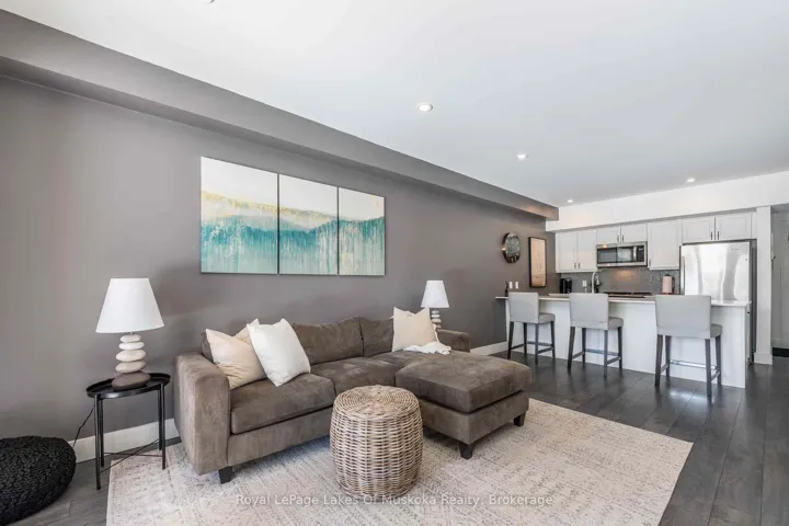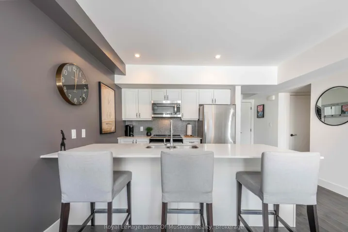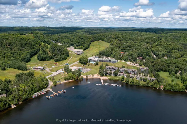 +"PublicRemarks": "An incredible opportunity to own this beautiful condo built in 2019 and tucked within a private, quiet enclave in the heart of Huntsville's premier recreational area. Enjoy an exceptional lifestyle in this 2-bedroom, 2-bathroom condo featuring upscale finishes and a thoughtfully designed open-concept layout. The unit offers one set of stairs at the entry, with convenient single-level living thereafter and a walkout to the outdoors. Perfect for pet owners, the condo features durable high-end vinyl flooring and a walkout to your private ground-level patio overlooking a wall of trees. Designed for both comfort and style, the home includes in-floor heating, a cozy gas fireplace, glass shower in the ensuite, ample storage, and convenient in-suite laundry. Bright and sun-filled, the spacious layout is ideal for relaxing or entertaining after a day of skiing, golfing, boating, or exploring the outdoors. Enjoy quiet evenings on your patio while barbecuing or unwinding in nature. Owners have access to 300+ feet of sandy beachfront on beautiful Peninsula Lake-part of Huntsville's renowned 4-lake chain-complete with a beach volleyball court and playground. The property is located just down the street from Hidden Valley Highlands Ski Area, where the initiation fee is covered should you choose to become a member. The ski hill also offers extensive hiking and mountain biking trails throughout the spring, summer, and fall. Initiation fees are also covered at the nearby Mark O'Meara golf course, a prestigious Club Link Platinum-level course. Ideally situated across the road from Deerhurst Resort on a quiet dead-end street, you can easily walk to restaurants, the beach, ski hill, mountain biking and hiking trails, and more.This is a fantastic low-maintenance option for a year-round residence or an alternative cottage retreat. This condo allows short term rentals and unit comes furnished and equipped. An inground pool is also planned for future construction on the property."