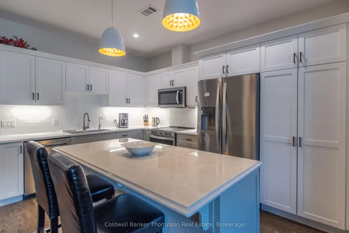 Discover Comfortable, Modern Living in the Heart of Huntsville. Welcome to The Tom, a thoughtfully designed, low-maintenance condo offering the perfect blend of style and comfort. Built in 2021, this 2-bedroom plus den home spans 1,319 sq. ft. of bright, open living space and is ideally located at 23 Campus Trail, putting downtown Huntsville just minutes away. Step inside to an open-concept living area filled with natural light, leading seamlessly to a balcony, perfect for morning coffee or summer BBQs. A well-appointed kitchen with an island and modern stainless steel appliances, versatile den provides an ideal space for a home office or 3rd bedroom. The primary bedroom is complete with a 4-piece ensuite and a generous walk-in closet, while the second bedroom sits beside an additional 4-piece. Comfort is effortless with in-suite laundry, central air conditioning, and condo fees that cover heat and water. Residents enjoy a host of amenities, including a common room, professionally landscaped grounds, secure underground parking with a storage locker, and ample visitor parking. Outdoor lovers will appreciate being minutes from Arrowhead Provincial Park, golf courses, pickleball courts, and scenic walking trails. With quick access to Highways 60 and 11, shopping, dining, medical centres, and the hospital are all within easy reach. Whether you’re looking for a full-time home or a seasonal retreat, this condo offers a warm, welcoming space in a truly convenient location.
