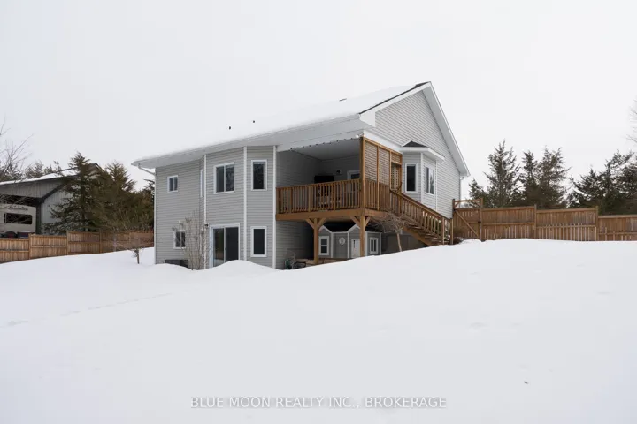 +"PublicRemarks": "Tucked at the end of a quiet waterfront cul-de-sac in a sought-after estate subdivision, this custom-built bungalow by RJM Classic Homes offers a rare blend of luxury, privacy, and connection to nature. Set on over 2.5 fully fenced acres, the property feels like your own private retreat while still being part of a community. Follow 700 feet of LED-lit forest walking trails through the trees to the water's edge, where evenings come alive with beautifully illuminated shoreline landscaping and a year-round floating dock with easy walkdown entry - perfect for morning paddles, sunset wine, or simply soaking in the view. The outdoor experience is designed for gathering and relaxation, featuring a custom 10' x 10' post-and-beam gazebo with power, a tranquil 13' decorative pond, and thoughtfully designed fencing with 6' wood privacy panels around the home and 4' field fencing along the perimeter. A 12' x 12' custom shed with 120V power and an automatic garage door opener adds both convenience and function. Inside, the home offers 3+1 bedrooms and 3 bathrooms with timeless design details, including two custom TV feature walls finished with real brick veneer, creating warm and inviting spaces to unwind. The finished walkout basement provides incredible flexibility and is well-suited for an in-law or secondary suite. Completing the home is a spacious three-car attached garage, making this property ideal for families, hobbyists, or those who simply want room to live fully. A rare opportunity to own a private waterfront lifestyle property where craftsmanship, nature, and comfort meet."