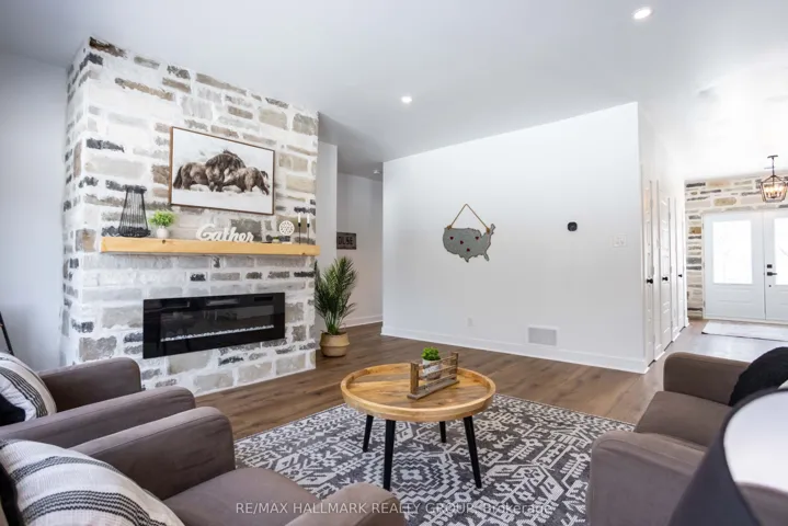 +"PublicRemarks": "Welcome to this stunning brand new custom-built stone bungalow set on 3.2 private acres, offering a rare blend of luxury, craftsmanship & peaceful country living surrounded by nature. Tucked among mature trees with a natural creek along the back of the property, this home offers exceptional privacy & a tranquil setting that feels like your own private retreat. Inside, the home showcases striking architecture with 10 ft ceilings, expansive windows, & extensive natural stonework that adds warmth & timeless character throughout. High-end luxury vinyl flooring with a durable anti-scratch finish flows seamlessly across the entire home.The open-concept living & dining space is designed to capture the beauty of the surrounding landscape. A stunning stone feature wall with fireplace anchors the room & serves as the focal point, while large sliding doors invite natural light inside & create a seamless connection between indoor living & the peaceful outdoor setting.The kitchen features premium cabinetry, quartz countertops, & a clean modern design that blends functionality with refined style while remaining perfectly connected to the main living space for entertaining.The home offers 3 spacious bedrooms & 2 beautifully finished bathrooms, including a serene primary suite with a walk-in closet & spa-inspired ensuite featuring a double vanity & glass shower. The primary bedroom also offers direct access to the backyard, allowing you to step outside & enjoy the quiet natural surroundings.Comfort & efficiency are enhanced by a high-end heating system valued at approximately $45,000, featuring heated floors throughout the home combined with a thermal heat pump & furnace system. Additional features include an HRV air exchange system & tankless hot water heater.The impressive heated garage offers approximately 1,400 sq ft of space & features a heated garage floor, providing excellent flexibility for vehicles, storage, hobbies, or workshop use."