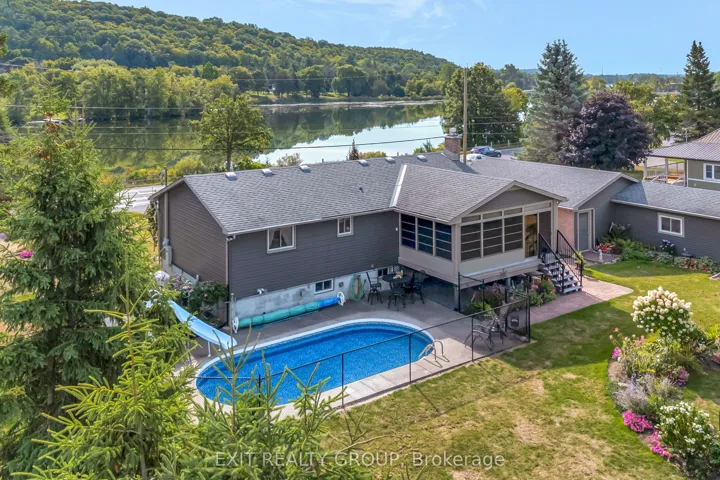 +"PublicRemarks": "Stunning 4 bed 2 bath raised bungalow with an attached garage, inground pool on a 0.45 acre lot with water view of the Trent River. Located in the charming community of Frankford, this turn-key home offers a private backyard oasis designed for entertaining. Step inside to a bright and spacious main floor featuring a large living room that flows seamlessly into the formal dining area. The contemporary L-shaped kitchen, completely renovated in 2019, provides an excellent workspace for the home chef. From the dining room, transition through garden doors to a serene sunroom, perfect for morning coffee while taking in the views. This level is rounded out by three generous bedrooms, including a primary suite with convenient "cheater" access to the updated 4-piece family bathroom with heated floors. The fully finished lower level expands your living space, anchored by an expansive recreation room featuring a cozy gas fireplace that makes it the ultimate spot for family movie nights. You will also find a large fourth bedroom ideal for guests or a home office, a modern 3-piece bathroom, and a dedicated laundry room with ample storage space. Outside, the exterior of this property is truly a showstopper. The oversized footprint provides plenty of green space for children and pets, while the dedicated pool house creates a resort-like atmosphere for summer gatherings. With updated windows and doors throughout for improved efficiency, this home perfectly captures the essence of comfortable, modern living in a prime location. Extra Bonus - A 14 KW Generac with a 200 Amp service entrance transfer switch was installed at the end of June 2023 and has a 5 year warranty."