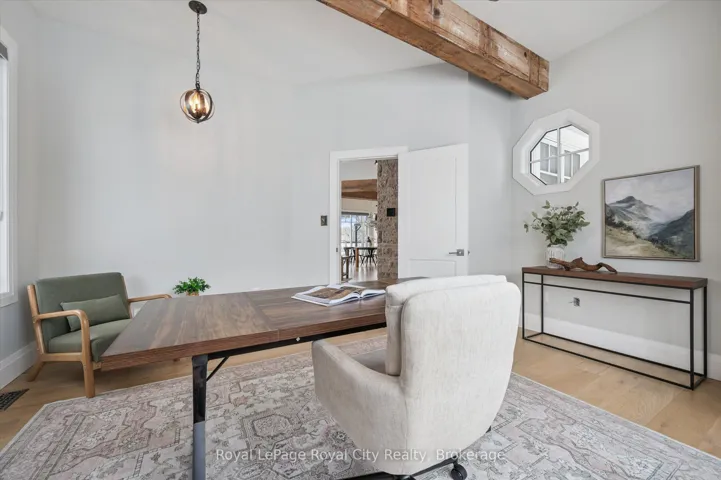 +"PublicRemarks": "Set on over an acre just minutes from the amenities, schools, and Highway 401 access of Guelph's south end, 226 Carter Road in Puslinch offers the rare opportunity to enjoy peaceful country living without sacrificing convenience. Built by renowned Sloot Construction, this thoughtfully designed modern farmhouse blends timeless character with the functionality families seek today. Offering 4+1 bedrooms, 3.5 bathrooms, and a versatile main floor den that could easily serve as a sixth bedroom or home office, the layout is designed for both everyday living and effortless entertaining. The main level is centred around gathering spaces, while the bedrooms remain a quiet retreat upstairs. Understated luxury is evident throughout, with finished-on-site hardwood floors, exceptional millwork, custom soft-close cabinetry, quartz countertops, and designer lighting. The gourmet kitchen is a true centrepiece, featuring chef-grade appliances including a 6-burner gas range, custom built-in hood, an oversized island, and a hidden walk-in pantry. It opens to a bright dining area with walkout to the expansive rear deck. The great room makes a striking impression with its soaring two-storey ceiling, floor-to-ceiling windows, and dramatic two-sided wood-burning fireplace with full-height stone surround, also known as a Mason's Furnace. Reclaimed barn beams add warmth and character to the space. Upstairs, the primary suite features a walk-in dressing room and private ensuite, while three additional bedrooms share a well-appointed family bathroom overlooking the great room below. The fully finished basement offers additional flexibility with a guest bedroom, full bathroom, and spacious recreation room with gas fireplace. Outside, the property provides endless possibilities-from gardens and bonfires to a future pool, skating rink, or even a small orchard. A truly special offering combining craftsmanship, space, and lifestyle in an exceptional setting."