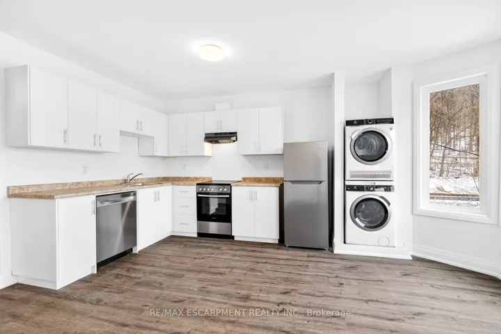 +"PublicRemarks": "Newly remodeled 2 bed, 1 bath second floor unit for lease in Hamilton. Bright open concept layout with modern white kitchen, stainless steel appliances, and updated flooring throughout. Features two spacious bedrooms, 3-piece bathroom with tiled shower, and convenient in-suite stacked laundry. Large windows bring in plenty of natural light. Close to parks, transit, shopping, and highway access."