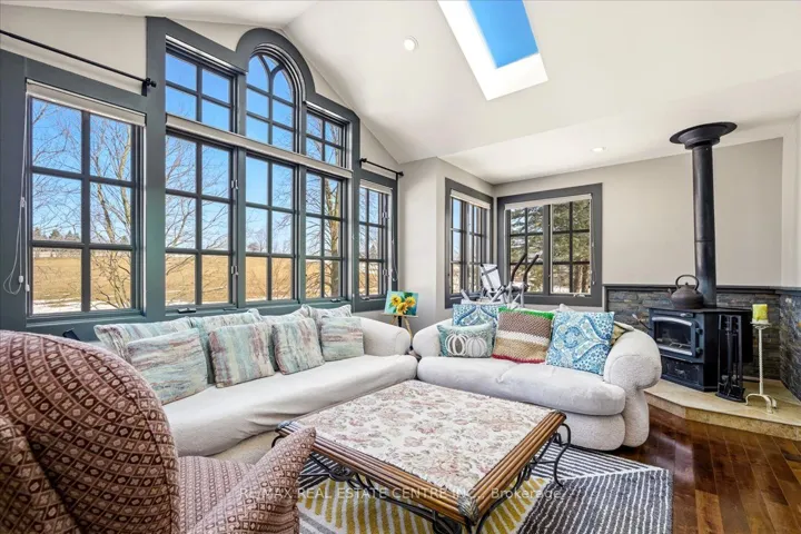 +"PublicRemarks": "Wow! Exceptionally low property taxes of just $3,384.80 thanks to farm status. The property borders Middletown Road and Regional Road 97. Move-in ready with no renovations required. Gorgeous scenic 8.76-acre country retreat just 5-10 minutes to Hwy 401/403 and only 20 minutes to Burlington, Hamilton, Cambridge, and Guelph. This beautifully updated and meticulously maintained 2-storey double-garage home offers 3+2 bedrooms, 4 baths, and a fully finished basement-blending peaceful country living with excellent commuter convenience. Agricultural/farm zoning. Set on rolling hills beside the Lafarge Trail-perfect for biking and hiking. Enjoy stunning views from the gourmet kitchen with granite counters, large island, s/s appliances, breakfast area, and walkout to a spacious deck. Features include a renovated primary ensuite with walk-in closet, sun-filled family room with skylight, large windows and wood stove, hardwood and marble floors on main and 2nd levels, cozy living room with garden views, and a finished basement with in-law suite potential and separate entrance option. Professionally landscaped front and backyard, plus garage panel ideal for EV charging. Updates: roof, new energy-efficient heat pump (10-year warranty remaining). Low utility cost average ~$200/month. 200-amp service, well pump, water softener, and two-tank drinking system. A rare move-in-ready country gem in a prime location!"