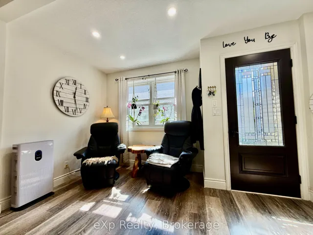 +"PublicRemarks": "Welcome to 12 Westbury Crescent. As you approach the home, you'll quickly notice the excellent curb appeal and clear pride of ownership. Eye-catching landscaping with stone raised garden beds, a cozy front porch with a modern glass railing, a concrete driveway, and an attached one-car garage provide parking for up to four vehicles. Head inside to the light-filled main level featuring a welcoming front living room with a huge bay window, a cherry wood kitchen with granite countertops, and a separate dining area with a sliding glass door leading to the private back deck. The living and dining rooms feature rich cherry hardwood flooring, and the main level is completed with a convenient powder room. Upstairs you'll find an updated 3-piece bathroom with a glass shower, a huge custom dressing room with plenty of storage, and three generously sized bedrooms, including a spacious primary bedroom with an electric fireplace. The basement offers plenty of bonus living space with a large recreation room featuring a gorgeous gas fireplace, a custom wine cellar, laundry room, plus a spacious utility room with a bathroom rough-in and additional storage. The backyard is your own private oasis with a quality-built deck with composite boards and cedar posts, surrounded by thoughtfully designed gardens, a pond, cedar shed, solid wood fence, and mature trees. All of this is located in a fantastic neighbourhood close to great schools, parks, easy access to groceries, Highway 401, and the Chilligo Conservation Area. Additional upgrades include blown-in insulation in the attic, vinyl siding with added insulation behind, deck reinforcement and hot tub rough-in, as well as gutter guards on both the home and shed."