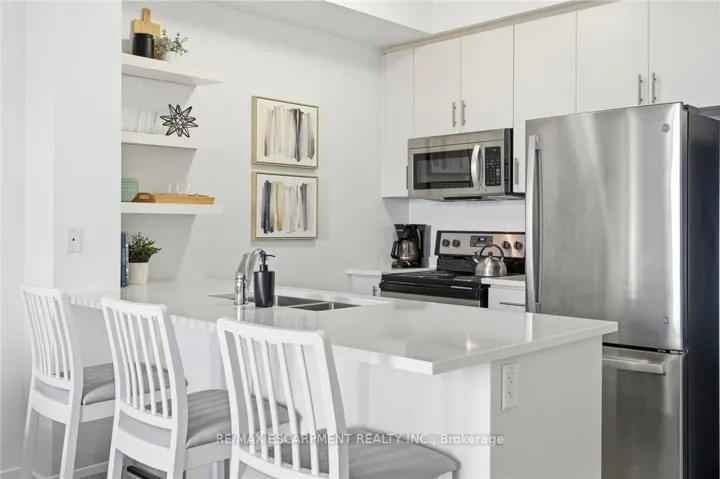 +"PublicRemarks": "Lakeside living just 15 minutes from downtown Burlington's vibrant shops, restaurants, and waterfront charm. Bright and spacious1 bedroom + den condo with breathtaking waterfront views! This unit has only been occupied by the owner and is a carpet-freehome that offers an open-concept design, a modern kitchen with quartz countertops, in-suite laundry, and plenty of natural light.Enjoy lake views from your balcony, living room, and even while preparing meals in the kitchen. The building offers fantasticamenities including a rooftop patio and party room. Ideally located minutes from the QEW, GO Station, and scenic waterfront trails."