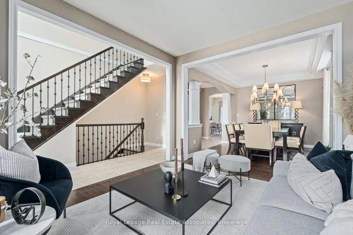 +"PublicRemarks": "Welcome to your Rockwood home!!! This absolutely gorgeous 4-bed, 3.5-bath Charleston home is located in a family friendly area on a quiet court. The front is landscaped with beautiful stone paths and covered porch to watch the sunsets overhead. The main level features a large foyer, combined living & dining room for entertaining, main floor office with large window and 2 pc powder room. The back of the house opens to a stunning kitchen w/ custom dark cabinetry, glass tiled backsplash, granite counters, S/S appliances, island w/breakfast bar, pantry & Walk out to a tiered deck overlooking a nicely landscaped yard. The Great room has a vaulted ceiling, lovely gas fireplace & large views over the yard. The main floor laundry and garage access for convenience. The 2nd floor has 4 spacious bedrooms & an office nook. The primary suite features his & her W/I closets & 5-pc ensuite. The finished basement has many options for a rec room, exercise area, studio or potential bedroom & 3-pc bath. Plenty of Storage & cold cellar. Located close to school, park, conservation area, trails & more!"