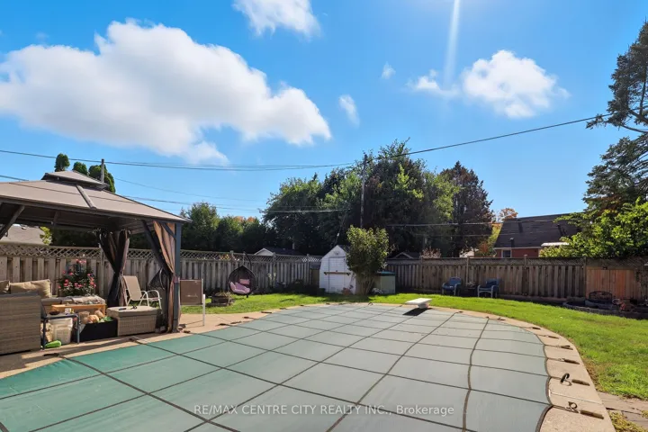 +"PublicRemarks": "A warm, welcoming home in Kiwanis Park with space for the whole family. The covered front porch sets the tone for a property thats been well cared for.The main floor offers a bright living room with plentiful natural light, two bedrooms, an updated bathroom, and a kitchen and dining area with granite counters, new stove, fridge, and dishwasher, plus a walkout to the backyard.Upstairs, the primary bedroom spans the entire level with built-in storage and room to unwind. The finished basement adds two more rooms, a full bath, a family rec room and a full laundry with new washer and dryer.The private, fully fenced yard is designed for both relaxation and entertaining, featuring an in-ground pool, gazebo, fire pit, gas BBQ hookup, and garden shed. Mature trees have been cleared to open the space, and updates include a new stove vent and ceiling replacement.Only 5 minutes to Argyle Mall and 10 minutes to the 401!"