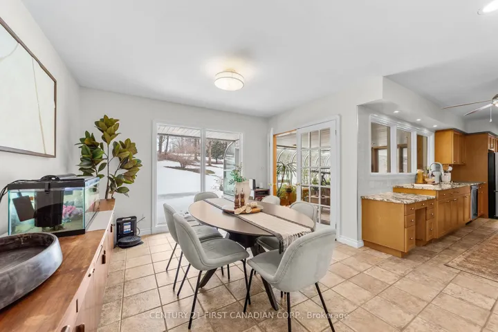 +"PublicRemarks": "A rare opportunity to own a picturesque 5.7 acre country estate. This classic mid-century modern home offers exceptional privacy, natural beauty, and timeless architectural style. Large windows throughout the home invite abundant natural light while capturing peaceful views of the surrounding countryside. The main level showcases a traditional mid-century modern layout with distinct , well-designed living spaces. A spacious timeless kitchen provides ample room for cooking and gathering , while the large sunken living room with an attached dining area creates an inviting setting for both everyday living and entertaining. The home features 3 spacious main floor bedrooms, 2.5 bathrooms, and the convenience of main floor laundry. A bright 4-season sunroom offers the perfect place to relax and enjoy the changing seasons year round. The fully finished basement expands the living space, making this home an entertainer's dream with plenty of room for recreation, hosting guests, or additional living areas. The property also includes an attached double car garage and a large detached workshop, offering storage and functionality for tools, equipment or hobbies. Surrounded by 5.7 acres of scenic countryside, this exceptional property offers the perfect balance of privacy, outdoor enjoyment, and peaceful rural living, all while showcasing the enduring character of mid-century modern design."