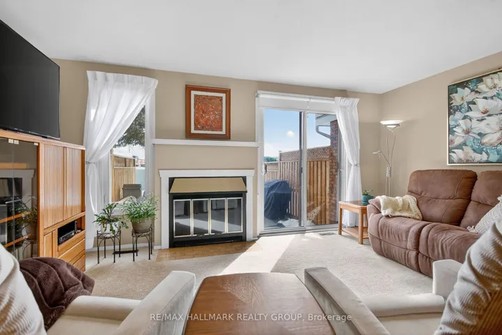 +"PublicRemarks": "Welcome to 1722 Rodin Way-a beautifully maintained 3-bedroom townhome ideally situated in a sought-after, family-friendly neighbourhood. This inviting home offers a thoughtfully updated kitchen featuring ample cabinetry and counter space, stylish backsplash, pantry storage, and excellent lighting with both natural light and pot lights. A convenient pass-through connects the kitchen to the dining area, making everyday living and entertaining effortless. The open-concept living and dining room enjoys the afternoon sun & features a cozy wood-burning fireplace and patio door access to the fenced backyard. Upstairs, you'll find three generously sized bedrooms, including a spacious primary bedroom with a wall-to-wall closet and cheater door access to the updated full bathroom. The bathroom showcases a quartz countertop and a modern, easy step-in shower. The main-floor powder room has also been tastefully updated and includes granite counters. The partially finished basement offers a large recreation room along with a dedicated laundry area with ample storage space. Step outside to a backyard with privacy fencing on two sides and a patio area perfect for relaxing or hosting friends and family. One convenient parking space is located directly in front of the unit. This well-managed condo community offers low condo fees which include water/sewer, building insurance, property management, snow removal, and grass cutting-making homeownership simple and stress-free. Enjoy a prime location within walking distance to transit, a shopping plaza, scenic parks, and top-rated schools, with quick access to Highway 417 just minutes away. A fantastic opportunity for buyers seeking comfort, convenience and value!"