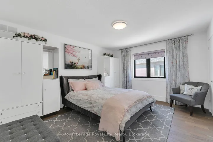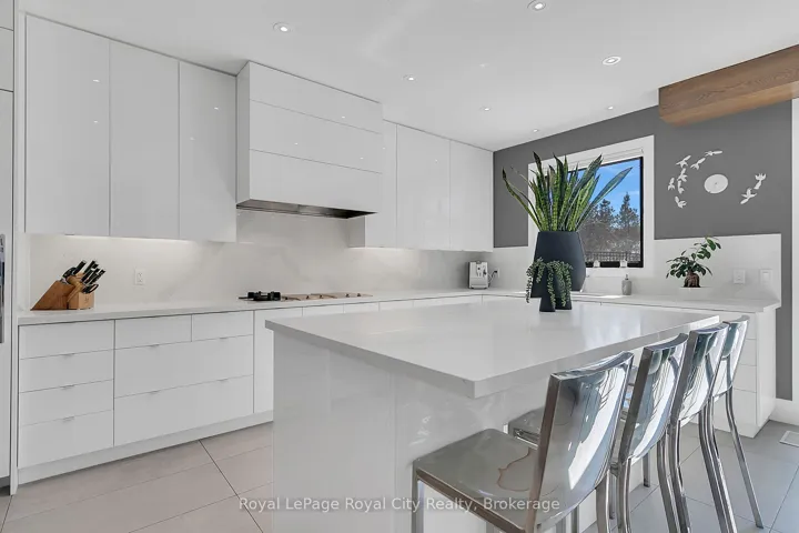 +"PublicRemarks": "Incredibly Rare South End Offering! Few properties can equal the attention to detail you can expect to find in this exceptional residence. You'll appreciate its proximity to schools, recreation, shopping and major transportation arteries, while being perfectly positioned on one of Guelphs premier south end crescents. This striking 2700+ sq ft 2 storey home is set on a massive pie shaped lot. Wait until you see the attention to the landscape design! I must say this family was well ahead of their time in design. It is hard to believe that this home has even been lived in, as it has been so meticulously maintained. Step inside and you will find a combination of a clean, understated and modern architecturally designed space for family living. As you enter, an impressive foyer showcases a grand staircase and there is a perfect home office or dining room with butlers pantry .you choose. From here, the gallery opens to the heart of the home. The custom kitchen with loads of cabinetry, granite countertops, high end appliances and breakfast island and connects to the great room and rear yard. The great room soars to 18' and showcases handsome built-in cabinetry and custom 2 storey gas fireplace. A fabulous 2 storey sunroom complete with screens and glass provides panoramic views of the extensive landscape and enjoys perfect entertaining and dining opportunities to enjoy for 3 seasons. The scale is dramatic and the look is glamorous, but its warm and comfortable at the same time! A 2pc bath on this floor and your laundry room is convenient and accessible from the 2 car garage. Upstairs and you will find all bedrooms are a generous size. The master suite is an oasis with a luxurious spa-like bath and walk-in closet with built-ins. Two additional bedrooms on this floor share access to a 4pc bath. The bright basement offers an additional 1203 square feet including a gym, 4th bedroom, full bath, and recreation room."