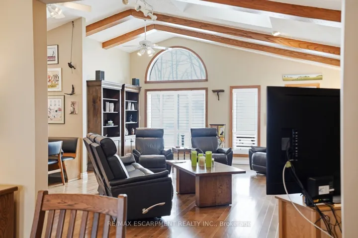 +"PublicRemarks": "Discover the perfect blend of privacy and serenity in this original-owner, meticulously-maintained, three-bedroom, two-bathroom bungalow-set on a peaceful 1-acre lot just south of Mount Hope. Surrounded by mature trees and with no direct neighbours, this property offers a calm retreat from everyday life. A beautifully-presented exterior welcomes you home with extensive professional landscaping leading to the front door. Inside, hardwood flooring throughout offers a continuous warm and inviting layout. Highlighted by a stunning family room, with vaulted ceilings, this bright and airy space offers beautiful views of the property, enhancing the calm, nature-filled setting. Adjacent to the family room is a large functional laundry room. The well-appointed kitchen features stainless steel appliances and granite countertops and flows seamlessly into the formal dining room-an ideal space for hosting holiday dinners and family gatherings. A 2-car garage provides ample room for vehicles and storage. Additionally, a convenient, on-grade access to the basement makes it perfect for a future in-law setup. The expansive yard offers endless possibilities for gardens, outdoor activities, or simple downtime with your favourite book on the large composite deck. Rare opportunity to own a private retreat just minutes from amenities-perfect for families, down-sizers, or anyone seeking tranquility and space. This home has been lovingly cared for since day one. RSA."