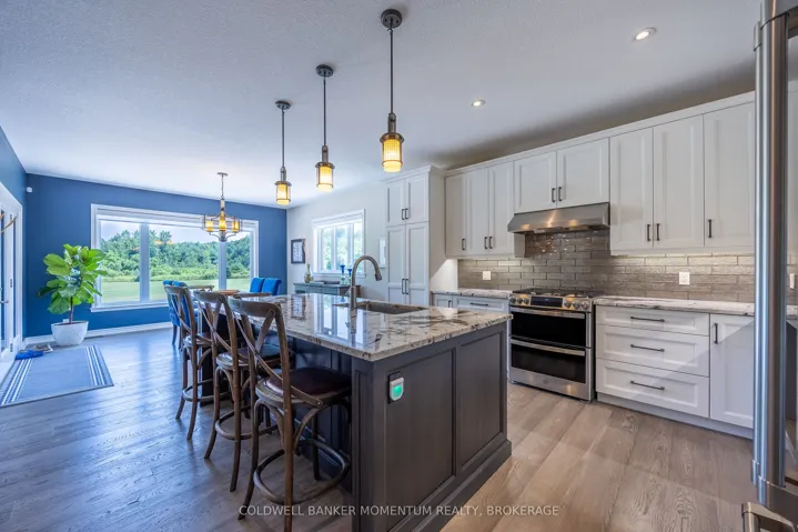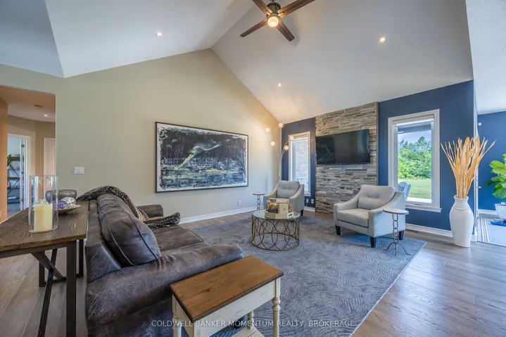 +"PublicRemarks": "Welcome to an exceptional executive, custom-built Energy Star qualified residence, privately set on 7.5+ acres and enveloped by 80+ acres of protected conservation land. This rare offering delivers refined country luxury with effortless access to the waterfront lifestyle just 15 minutes from the sandy beaches of Lake Erie and multiple nearby marinas, ideal for boating, fishing, and sunset escapes. Impeccably maintained, the home showcases premium craftsmanship and upscale finishes throughout. A standout feature is the oversized 1,219 sq. ft. four-bay garage with shelving, perfect for car collectors, recreational toys, or abundant storage. A 22 k W natural gas whole-home backup generator ensures uninterrupted comfort in every season. The interior exudes warmth and sophistication with engineered hardwood floors, granite countertops, a gas range, and a striking 8-foot custom granite kitchen island, complete with counter stools, designed for both entertaining and everyday living. LED pot lighting throughout the home and exterior enhances the bright, modern ambiance while remaining energy efficient. The fully finished basement offers an expansive recreation space featuring 9-foot ceilings, large windows, and a cozy gas fireplace, creating the perfect retreat for relaxed evenings or hosting guests. Outdoors, your private resort-style setting awaits. Enjoy a 2,300+ sq. ft. concrete patio complete with an outdoor shower, and a dedicated fire-pit lounge with Adirondack chairs. Concrete porches at both the front and rear provide durable, low-maintenance spaces to take in the peaceful surroundings. Additional amenities include two wells (one dedicated to lawn irrigation) and a 10' x 24' shed with hydro and water, ideal for hobbies, gardening, or additional storage. Whether you're entertaining in the elegant indoor spaces or unwinding outdoors after a day on the water or hiking in the woods , this thoughtfully designed property offers a rare blend of privacy, luxury."