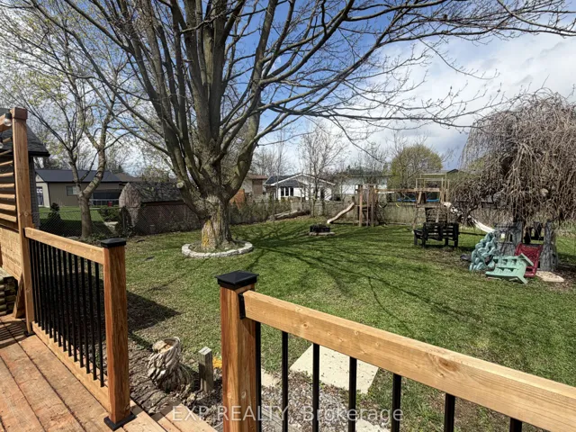 +"PublicRemarks": "Originally built in 1964 this beautifully updated all-brick bungalow sits in the heart of Watford, ideally located directly across the street from the town's public school, East Lambton Community Complex, and Sports Field. An unbeatable location for families and anyone who values convenience and community living. This well-maintained home offers 3 bedrooms on the main floor and an additional bedroom in the fully finished lower level, along with a brand new modern 4-piece bathroom upstairs and a brand new 3-piece bathroom downstairs. The bright main level features hardwood flooring, updated windows (2025), and thoughtful upgrades that make this home move-in ready. The finished lower level was completed just one year ago, featuring luxury plank flooring, new carpet, and plenty of additional living space. A new sump pump adds peace of mind even though this home has no water issues. Major mechanical updates include a gas forced-air furnace (2015), updated ductwork, and central air conditioning (2015). The home also features a durable steel roof inspected last year, repaired eavestroughs, and a poured concrete foundation. The attached single-car garage features a brand new epoxy floor, new garage door, and automatic opener. Step outside to enjoy the large fully fenced backyard, complete with gates on both sides, mature trees including a beautiful weeping mulberry and maple, a newly built deck with gas hookup for BBQ, and a convenient garden shed. A charming fireplace with existing chimney offers the potential to restore a wood-burning feature if desired. This is a solid, thoughtfully updated home in one of Watford's most convenient locations. Perfect for anyone looking for comfortable small-town living directly across the street from the coolest amenities."