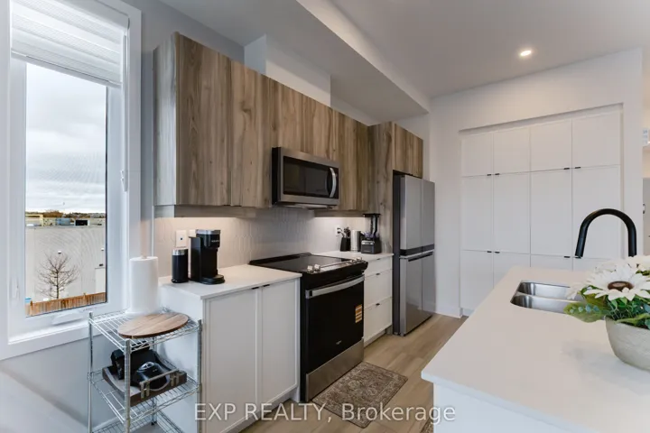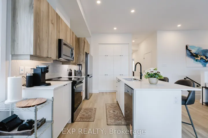 +"PublicRemarks": "Experience upscale living in this top-level end-unit luxury stacked condo townhouse in the heart of Findlay Creek. An excellent front porch and spacious foyer with a closet welcome you in before leading upstairs to the bright open-concept living and dining area, thoughtfully designed with 9-ft ceilings, elegant accent walls, and ceiling-mounted ceiling-to-floor luxury blinds. The main level features two spacious bedrooms and two full washrooms, including a primary bedroom with a walk-in closet and a luxury ensuite, while the secondary bedroom is also generously sized. The modern kitchen is equipped with stainless steel appliances, and laundry is conveniently located on the same floor for everyday ease. Step out from the dining area to enjoy your private balcony, perfect for relaxing or entertaining. As a top-level end unit, the home offers added privacy, abundant natural light, and one dedicated parking space conveniently visible from the window. Ideally located within walking distance to Fresh Co, Anytime Fitness, Starbucks, Tim Hortons, multi cultural restaurants, and major banks, this luxury condo offers both style and practicality. Enjoy living in a functional, upscale home with everyday amenities just steps away, all while being a short drive to downtown Ottawa and the airport. All utilities and hot water tank rental extra from the lease amount."