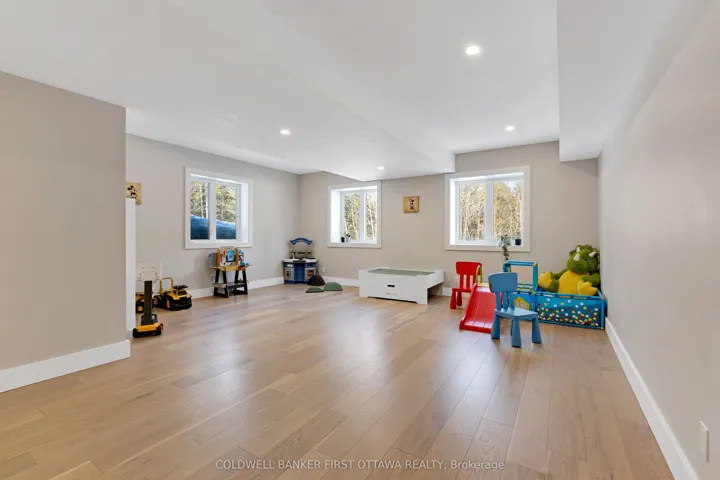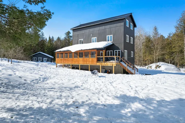 +"PublicRemarks": "With three storeys of living space, every family member has their own private space plus comfortable rooms for gathering together. Outside, 4.9 acres to enjoy - especially when exploring trails meandering thru the property. Built in 2021, the home blends into its natural surroundings with attractive board & batten styled siding, made of durable vinyl. Welcoming covered front porch extends into expansive screened sunroom, for games or relaxing. The 5 bedroom, 3.5 bathroom home has modern hardwood floors flowing thru living areas and bedrooms; ceramic tile in bathrooms. Open living, dining and kitchen with ceiling pot lights adding extra sparkle to the sunny spaces. Kitchen full of tasteful contemporary finishes with quartz counters, under counter lighting, honeycomb ceramic backsplash, five-burner stove and big island-breakfast bar. Kitchen breakfast nook is wrapped in windows overlooking tranquil outdoors. Second floor primary suite has vaulted ceiling creating great sense of space. The primary also includes walk-in closet and 5-pc ensuite with extra-deep soaker tub plus glass shower with rain head. Second floor has two more generous bedrooms and 4-pc bathroom with soaker tub plus rain head shower. Having a laundry room on the second floor is the best convenience ever. On third floor is home's 4th and 5th bedrooms plus 4-pc bathroom also with deep soaker tub and separate rain head shower. Lower level family room suits your entertainment centre. Attached double garage inside entry and rough-in for propane heater. Detached garage/workshop has 100 amps. Metal roofs on home and the two garages. Reliable internet and cell service, up to speed for those who work from home. Located on township maintained road with mail delivery, garbage/recycling pickup & school bus route. 10 mins to Pakenham where there is well-known golf course, family ski hill and century stone store full of freshly-baked delectables. Or, 10 mins to Almonte for shopping & fine dining. 35 mins to Kanata."
