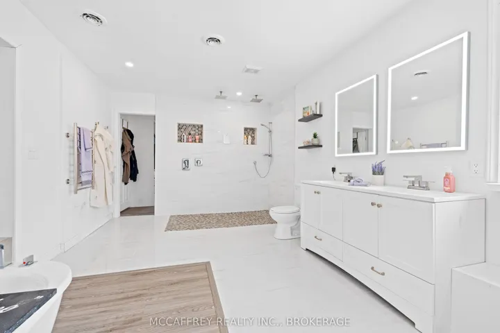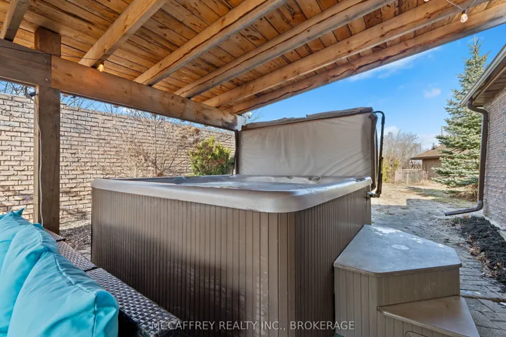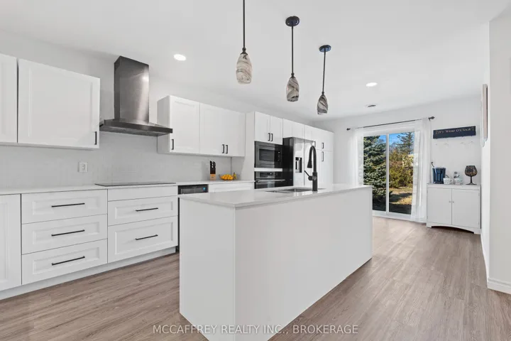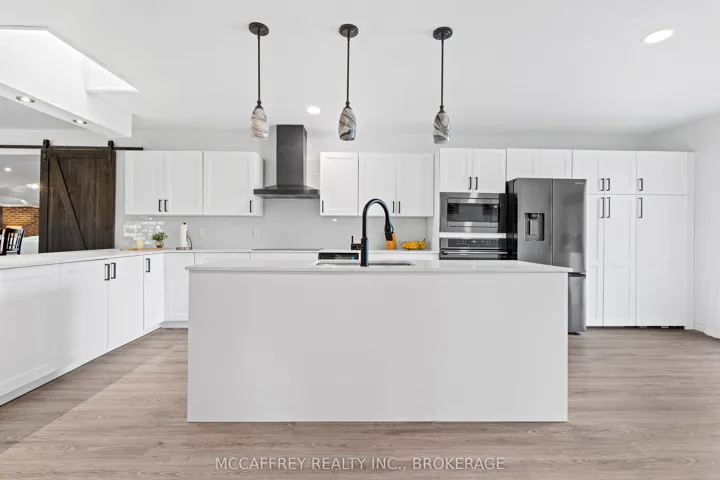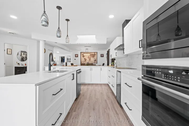 +"PublicRemarks": "This beautifully updated 4-bedroom, 3-bathroom gem blends modern elegance with homey comfort in a serene neighborhood. Designed with luxury and functionality in mind, this 1.5-story residence is a true find. The spacious kitchen features exquisite quartz countertops and sleek black stainless-steel appliances. Enjoy slow-close drawers with hidden utensil compartments and a built-in garbage/recycling drawer, making it a chefs paradise. Luxury vinyl floors flow through the main living areas, complemented by all-new trim, while updated windows and doors, on the main level, provide abundant natural light. Entertain effortlessly in the large family room with a stylish bar area, perfect for gatherings. Two of the bedrooms boast plush new carpet, offering comfort and warmth. The primary bedroom is a retreat, featuring a lavish 5-piece ensuite with a deep soaker tub, dual waterfall shower heads with handheld attachment, and anti-fog backlit mirrors. Adjacent is a spacious his and hers walk-in closet with motion lighting. The additional 3-piece bathroom offers new flooring and a sleek shower stall for guests convenience. The backyard is a private haven designed for relaxation and entertainment. A beautiful brick privacy wall and pergola create the ideal setting for outdoor dining, while 15 newly planted cedar trees enhance the landscape, providing beauty and privacy. This property combines contemporary upgrades with timeless charm. Don't miss the chance to call this stunning house your home! Updates: Kitchen 2021-2025, Pergola 2022, New carpet in two bedrooms 2025, Main floor windows/doors 2021."