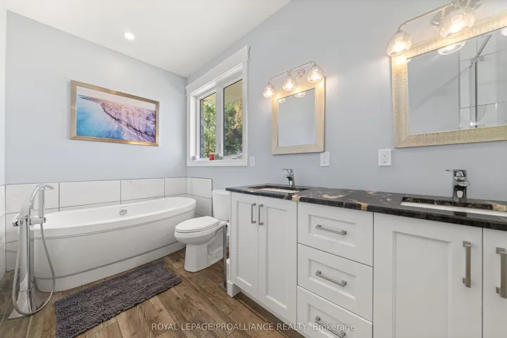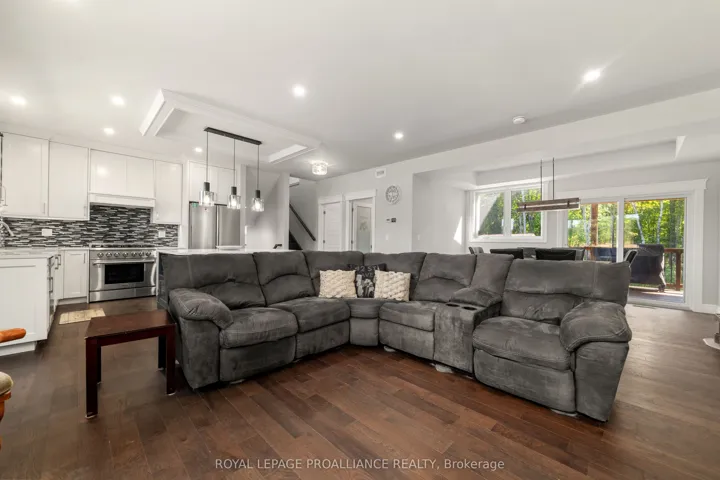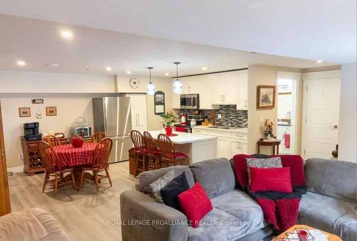 +"PublicRemarks": "Welcome to this impressive stone-front home, set on just under 1.5 acres of private property. Offering 7 bedrooms, 4 bathrooms, and over 4,000 sq. ft. of living space, this home is perfect for families who value both space and style. The main level features a bright, open-concept layout with a spacious living room, dining area, and chef's kitchen. The kitchen is a true centerpiece, boasting a large island, modern appliances, a walk-in pantry, and sleek finishes throughout. The main floor primary suite includes a walk-in closet and a spa-like 5-piece ensuite, while a convenient 2-piece powder room and main-level laundry add practicality. Upstairs, you'll find a large family room and four generously sized bedrooms-two with walk-in closets-along with a beautifully finished 5-piece bathroom. The lower level is perfectly set up as an in-law suite, complete with an open-concept kitchen, living and dining space, new flooring, two additional bedrooms, and a 4-piece bathroom. Outdoor living is just as impressive with a large rear deck, partially covered for year-round enjoyment, accessible from both the dining room and the primary suite. Relax in the hot tub or take in the peace and privacy of the expansive lot. Car enthusiasts and hobbyists will love the attached double-car garage with a convenient drive-through, plus an additional detached garage for extra storage or workspace. This property offers the perfect blend of luxury, functionality, and privacy-an ideal place to call home."