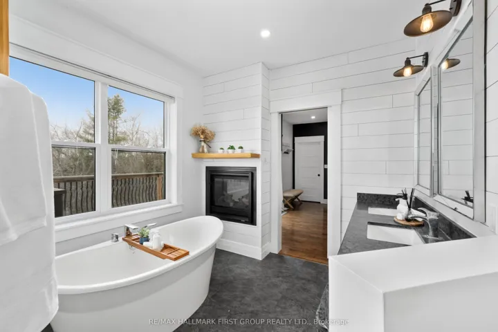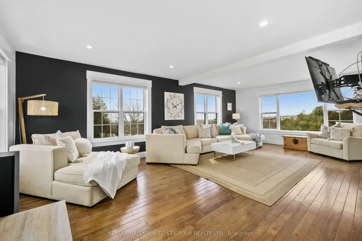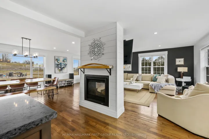 +"PublicRemarks": "Set high on a scenic hilltop and surrounded by around 1.5 acres of Northumberland's rolling countryside, this impressive home offers space, privacy and breathtaking views in every direction. Thoughtfully designed to blend comfort with craftsmanship, the home welcomes you with an impressive foyer and soaring 19-foot ceilings that set the tone for the elegant yet relaxed living spaces beyond. At the heart of the home is a stunning open-concept kitchen, dining and living area-perfect for gathering, entertaining and everyday family life. The living room is anchored by a beautiful two-sided fireplace that creates warmth and atmosphere throughout the main living spaces. Large windows frame sweeping countryside and lake views while walk-outs from both the living room and the primary bedroom lead to the multi-level decks, seamlessly extending your living space outdoors. With five spacious bedrooms and four well-appointed bathrooms, this home offers room for growing families or multigenerational living. The private primary suite feels like a retreat of its own, complete with deck access and a luxurious spa-inspired ensuite featuring a freestanding soaker tub and its own two-sided fireplace-perfect for quiet evenings and slow mornings. The finished lower level adds even more flexibility with bright walk-out access to the patio, office, recreational area, additional bedroom and a further bathroom creating an ideal space for recreation, guests or a home gym. Outside, the property includes a generous sized paddock and barn complete with hydro perfect for horse lovers or easily removed for your personal requirements. Surrounded by nature yet designed for modern living, this exceptional hilltop property captures the very best of rural Northumberland-space to breathe, views to savour and a home that feels refined yet warm and welcoming."