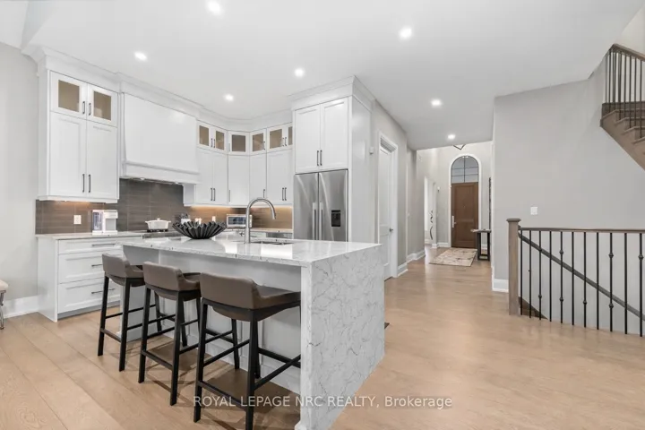 +"PublicRemarks": "Ohh La La! Welcome to Fonthill's most exclusive enclave of luxury townhomes 'Canboro Hills' - where elegance, privacy and tranquility meet. Built by the acclaimed De Haan Homes, this exceptional Tintern Model offers 3 bedrooms, 3.5 baths and 2,774 (+/-) sq. ft. of refined above-grade living space, plus a fully finished walk-out lower level, all enhanced by upscale finishes throughout. Perfectly positioned at the quiet rear of the community, this residence enjoys serene ravine views and remarkable privacy, beautifully blending luxury living with nature. A striking entrance welcomes you defined by soaring 10-ft ceilings, gleaming porcelain tile, engineered hardwood, designer pot lighting, elegant 7.25" baseboards, 8-ft doors and premium fixtures, creating a warm yet sophisticated atmosphere. The dining room impresses with a dramatic 15-ft vaulted ceiling, while the chef-inspired custom kitchen showcases Fisher & Paykel appliances, induction range, stunning quartz countertops and a generous walk-in pantry. The spectacular Great Room features an impressive 18-ft vaulted ceiling, anchored by a sleek 60" linear gas fireplace with custom built-ins, creating a stunning focal point.The primary suite is a peaceful sanctuary with a spa-inspired 5-piece ensuite. A stylish powder room with full linen closet and a spacious mudroom/laundry with built-in bench complete the main level. Ascend the elegant white oak staircase to the upper loft where guests enjoy a generous bedroom with walk-in closet and private 3-piece ensuite.The finished walk-out lower level expands the living space with a large recreation room with electric fireplace, an additional bedroom with walk-in closet and 3-piece bath. Outdoor living is equally impressive with peaceful ravine views from the covered balcony with composite decking, glass privacy wall and gas line, while the lower concrete patio offers another private outdoor retreat. Luxury, privacy and timeless design refined Fonthill living at its finest."
