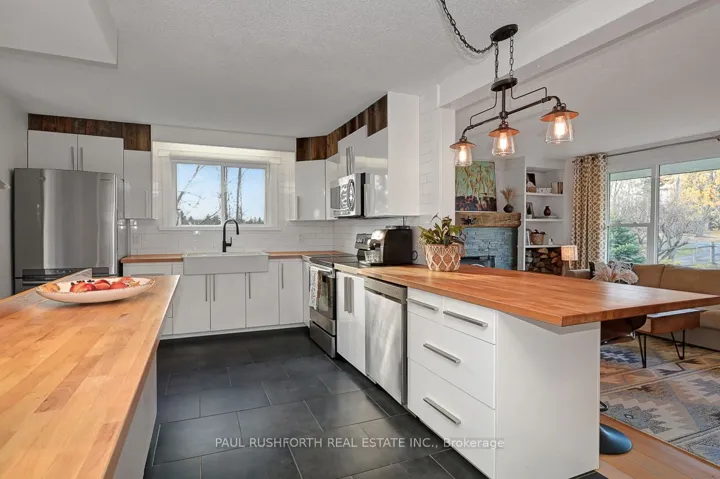 +"PublicRemarks": "Your peaceful country retreat awaits. Discover the perfect blend of charm, comfort, and space in this meticulously maintained 2+1 bedroom, 2 full bath bungalow, set on over an acre picturesque lot surrounded by nature. Step inside to find rich hardwood floors and a bright, bistro style kitchen that radiates warmth and character. Flooded with natural light and freshly painted, the open concept layout flows seamlessly into a cozy living room with a wood burning fireplace, the perfect place to unwind on cool evenings. A separate dining area opens to a large deck overlooking the above ground saltwater pool, perfect for entertaining or relaxing in your private oasis. The main floor features two inviting bedrooms, including a primary suite, and an elegant full bath with his and her sinks. Downstairs, the fully finished lower level offers a third bedroom, a large entertainment or family room, a second full bath, and generous storage. Outside, enjoy your fully cedar fenced backyard, detached garage with two additional carports- 1 is covered, 1 is frame only, a durable steel roof, and ample parking for all your vehicles and toys. Whether you're entertaining friends, raising a family, or simply seeking tranquility, this property delivers it all. Come experience the serenity. This is home!"