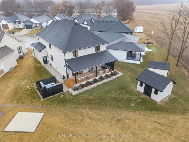 +"PublicRemarks": "Welcome to luxury living in the charming lakeside community of Port Burwell. This stunning two-storey home offers exceptional craftsmanship, thoughtful design- perfect for those seeking both elegance and everyday comfort. Step inside to a spacious, welcoming foyer that immediately sets the tone for the home. Down the hall, you'll find a convenient 2-piece powder room and a beautifully designed mudroom off the garage features custom built-ins. Continue through to the impressive dining room. The space flows seamlessly into the breathtaking great room where custom arched built-ins frame the fireplace and TV, creating a warm yet sophisticated focal point. Large windows throughout the main floor flood the home with natural light. The chef-inspired kitchen is both functional and striking, featuring white floor-to-ceiling cabinetry, a contrasting dark wood island, stainless steel appliances, a built-in oven. With a thoughtfully designed pantry/coffee bar adds extra storage and convenience. Upstairs, the attention to detail continues with a spacious and beautifully finished laundry room. One bedroom features its own private 4-piece ensuite, while two additional bedrooms share a well-designed Jack and Jill 5-piece bathroom. The primary suite is a true retreat, offering generous space, a large walk-in closet, and a luxurious 5-piece spa-like ensuite complete with a soaker tub and glass shower. The fully finished basement expands the home's versatility with an additional bedroom, a office space, a 4-piece bathroom, and a large recreational living area. Step outside to enjoy the beautifully designed backyard, featuring a covered porch ideal for relaxing or entertaining. A poured concrete pad leads to a secluded hot tub area, creating the perfect private oasis to unwind and make your own. This exceptional home blends luxury, comfort, and thoughtful design in one of Ontario's most charming lakefront communities."