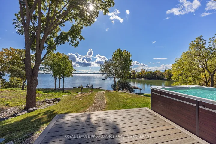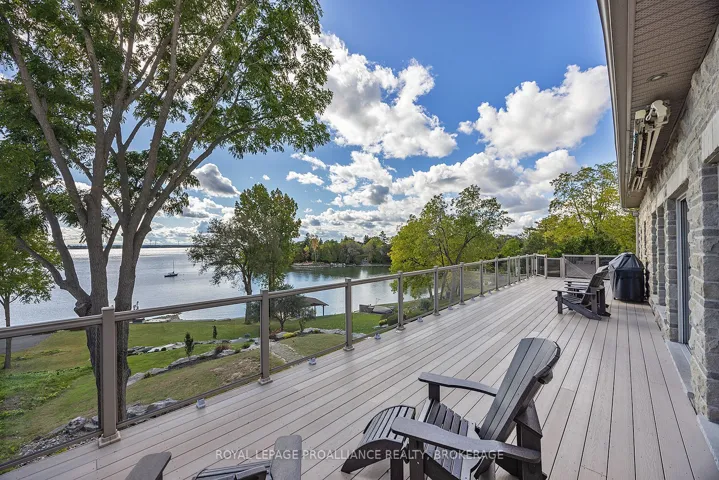 +"PublicRemarks": "Experience Unrivaled Luxury on the Shores of Lake Ontario. Welcome to your private lakeside retreat - a breathtaking 5,778 sq. ft. masterpiece built by Garofalo Homes, designed to capture panoramic water views and timeless elegance at every turn. Step through the grand foyer with its 18-foot ceilings and immediately feel the sophistication and warmth of this meticulously cared-for home. The main level offers a spacious great room with sweeping lake views, a primary bedroom suite with an ensuite bath, a chef's kitchen, and beautiful hardwood flooring throughout. Ascend the elegant open staircase to find three additional bedrooms, each with generous closet space, and a serene guest bath. The fully finished lower level is ideal for entertaining or relaxation, featuring two more bedrooms, a full bathroom, a private gym, and a heated patio with a 14-foot swim spa-perfect for unwinding while taking in the stunning sunsets. The backyard oasis is a true showstopper, boasting professionally designed landscaping that leads to the private 50' x 12' concrete dock with lighting, power pedestals, , 2 Sea-Doo lifts, and power to accommodate a 7,000-lb boat lift- all expertly crafted by Kehoe Marine for the ultimate waterfront lifestyle. Recent upgrades elevate the home even further: a patterned concrete driveway, smart Lutron lighting system, infrared camera system, 2 new Carrier furnaces, cold-climate heat pumps, and Nest thermostats. The heated 3-car garage includes a gas heater and an external gas generator for peace of mind year-round. Perfectly situated near Amherstview, Parrotts Bay Conservation Area, and just minutes from downtown Kingston's shops and restaurants, this home blends serenity with convenience. With its generous layout and unmatched location, it's an exceptional opportunity for a luxury residence, bed & breakfast, or even a professional home office. Take the first step toward your dream waterfront lifestyle. Experience Lake Ontario living at its finest."