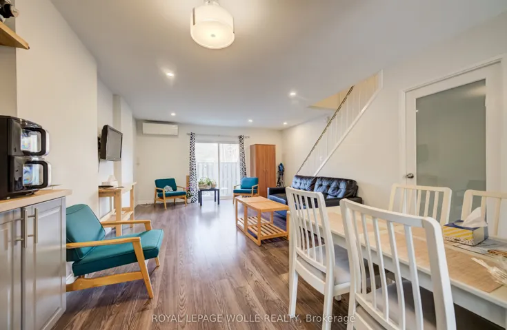 +"PublicRemarks": "Welcome to this well-maintained 3-bedroom, 3-bathroom attached townhome located in a desirable Waterloo neighbourhood. Featuring a bright open-concept main floor, this home offers comfortable living with modern updates throughout! The renovated kitchen (2022) features sleek finishes, stainless steel appliances, and plenty of cabinetry, making it perfect for everyday living and entertaining. The main floor also includes convenient laundry, a 2-piece powder room, and a spacious living and dining area with access to the outdoor space. Upstairs you'll find two generously sized bedrooms and a 4-piece bathroom, providing comfortable space for family or guests. The finished basement adds excellent versatility, featuring a 3-piece bathroom and a third bedroom that can easily function as a private bedroom, guest suite, or recreation room, depending on your needs. Enjoy outdoor living in the private fenced patio area, perfect for relaxing or entertaining. Additional updates include windows (2018) and ductless wall A/C units in every room for efficient year-round comfort. This property also includes 1 dedicated parking space and is conveniently located close to the University of Waterloo, schools, parks, transit, and everyday amenities, making it a fantastic opportunity for both homeowners and investors."