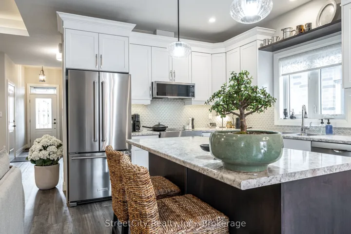 +"PublicRemarks": "Pristine 2+1 bedroom bungalow in Countryside Estates in Stratford growing northwest corner subdivision. Conveniently located near shopping, grocery, restaurants, cinema, schools, community centre and more. Impeccably kept 1374 sqft bungalow featuring a bright a spacious open concept main floor offering a gracious kitchen w/ island overlooking a great room w/ coffered ceiling, updated appliances including Bosch Dishwasher, and Kitchen Aid Stove w/induction cooktop, dining area w/ walk out to covered deck and private fully fenced rear yard. Primary bedroom w/ walk-in closet & 3pc ensuite bath. Secondary bedroom, 3pc bath & main floor laundry complete the welcoming main level. The finished lower level holds a large rec room, 3rd bedroom, 3pc bath, large utility room/storage, plus an additional storage area. Attached garage, a double driveway. Built in 2017 this property has been well cared for and ready for the next lucky owners. Call for more information or to schedule a private showing."