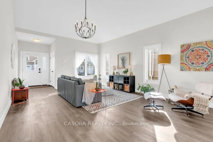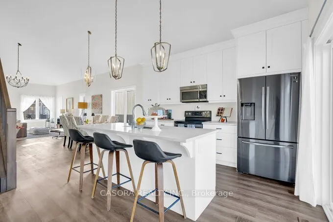 +"PublicRemarks": "Welcome to this beautifully designed end unit townhome in the charming lakeside community of Port Dover located in a very quiet area just minutes from the beach shops restaurants and everything this beautiful town has to offer. As you enter the home you are greeted by soaring ceilings modern lighting and an open concept layout filled with natural light. The western exposure allows sunlight to fill the space from morning through the afternoon creating a warm and inviting atmosphere throughout the main living area.The modern kitchen features white cabinetry quartz countertops stainless steel appliances a built in microwave and a large island perfect for gathering with family and friends. The kitchen flows seamlessly into the spacious living and dining areas finished with wide dark engineered plank flooring that adds a contemporary and elegant feel.The main floor primary bedroom offers comfort and privacy with a walk in closet and private ensuite bath allowing for convenient main level living. Upstairs you will find two additional spacious bedrooms and a full bathroom ideal for family guests or a home office.A convenient laundry room with quartz counter and easy inside access to the garage adds everyday practicality. Neutral colour walls the end unit position and the excellent sun exposure provide plenty of natural light throughout the home.Step outside to enjoy the two level patio perfect for relaxing or entertaining with no neighbours overlooking you only open pasture behind you offering a rare sense of privacy and tranquility.Located just minutes from Port Dover's beach marina restaurants and quaint downtown this home combines modern comfort with the relaxed lifestyle of one of Ontario's most beloved beach towns"
