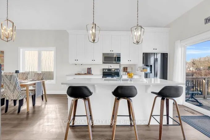 +"PublicRemarks": "Welcome to this beautifully designed end unit townhome in the charming lakeside community of Port Dover located in a very quiet area just minutes from the beach shops restaurants and everything this beautiful town has to offer. As you enter the home you are greeted by soaring ceilings modern lighting and an open concept layout filled with natural light. The western exposure allows sunlight to fill the space from morning through the afternoon creating a warm and inviting atmosphere throughout the main living area.The modern kitchen features white cabinetry quartz countertops stainless steel appliances a built in microwave and a large island perfect for gathering with family and friends. The kitchen flows seamlessly into the spacious living and dining areas finished with wide dark engineered plank flooring that adds a contemporary and elegant feel.The main floor primary bedroom offers comfort and privacy with a walk in closet and private ensuite bath allowing for convenient main level living. Upstairs you will find two additional spacious bedrooms and a full bathroom ideal for family guests or a home office.A convenient laundry room with quartz counter and easy inside access to the garage adds everyday practicality. Neutral colour walls the end unit position and the excellent sun exposure provide plenty of natural light throughout the home.Step outside to enjoy the two level patio perfect for relaxing or entertaining with no neighbours overlooking you only open pasture behind you offering a rare sense of privacy and tranquility.Located just minutes from Port Dover's beach marina restaurants and quaint downtown this home combines modern comfort with the relaxed lifestyle of one of Ontario's most beloved beach towns. Building Insurance, Building Maintenance, Cable TV, Doors , Ground Maintenance/Landscaping, High Speed Internet, Parking, Private Garbage Removal, Property Management Fees, Roof, Snow Removal, Windows"
