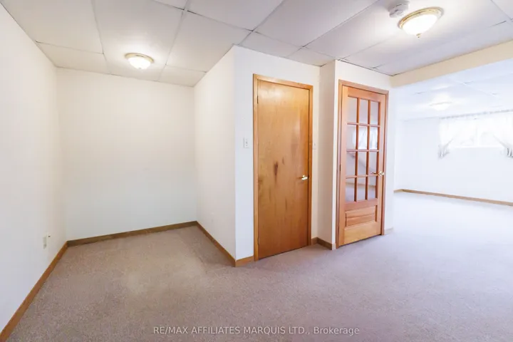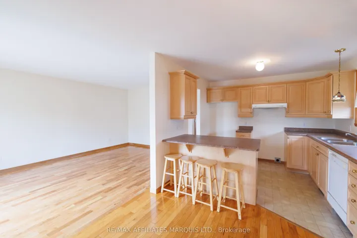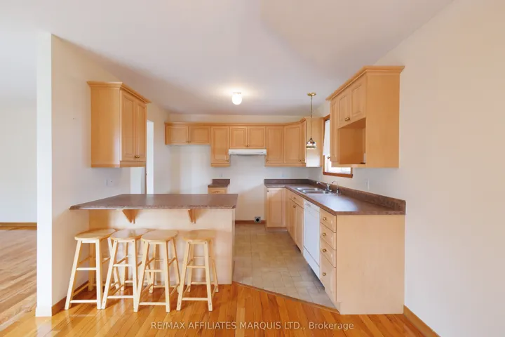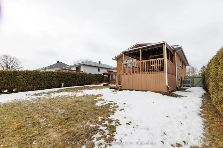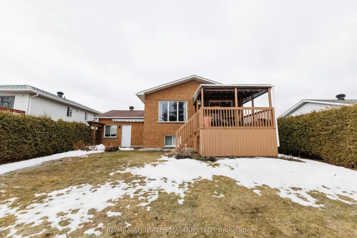 +"PublicRemarks": "Tucked away on a quiet crescent in Cornwall's desirable east end, this well maintained all brick home offers a wonderful combination of comfort, location, and lifestyle. Backing directly onto Menard Park and just minutes from the scenic St. Lawrence River, this property provides a rare opportunity to enjoy peaceful neighbourhood living with green space right in your backyard. Inside, the bright main level welcomes you with warm hardwood floors and large windows that fill the home with natural light. The spacious living room offers plenty of room to relax or gather with family and friends and flows seamlessly into the dining area. Sliding patio doors lead to a covered deck overlooking the backyard and park, a perfect setting for summer dining, morning coffee, or simply enjoying the view. The adjoining kitchen offers ample cabinetry, functional workspace, and a practical layout that remains connected to the main living areas. Two well-sized bedrooms with hardwood flooring and generous closet space are also located on the main level, along with a four-piece bathroom. The lower level provides additional living space with a large family room, a convenient three-piece bathroom, and a spacious room that could function as a third bedroom or home office. A utility room with a generous workbench area and additional storage beneath the stairs adds practical functionality. With its bright interior, comfortable layout, and sought after location backing onto parkland, this east-end property offers a fantastic opportunity to enjoy a quiet neighbourhood close to Cornwall's schools, services, and recreation."