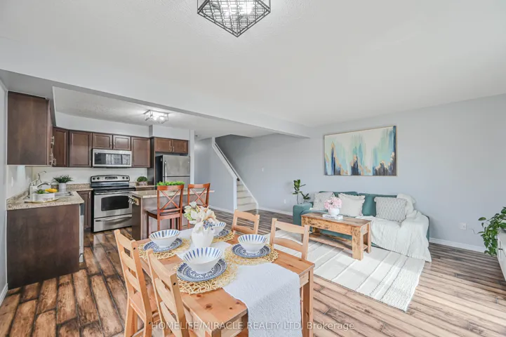 +"PublicRemarks": "Welcome To 165 Hampshire Way #92, Milton - A Rare End-Unit Townhome That Lives Like A Semi. Nestled On A Premium Corner Lot This 3 Bedroom, 3 Bathroom Home Is Flooded With Natural Light From Multiple Exposures - A True Standout In The Complex. With Visitor Parking Conveniently Located Right Next Door, Everyday Living And Entertaining Are Seamless. Beautifully Updated And Completely Move-In Ready, Featuring Fresh Paint, Newly Refinished Hardwood Floors And Contemporary Light Fixtures Throughout. Offering Approximately 1,444 Sq Ft Of Functional, Well-Planned Living Space Designed For Both Comfortable Family Living And Effortless Entertaining. The Ground Level Welcomes You With A Bright Foyer Featuring A Coat Closet, Front-Load Laundry, Direct Garage Access And Additional Under-Stair Storage - Practical And Convenient For Daily Living. The Main Level Is The Heart Of The Home Featuring 9Ft Ceilings - Showcasing A Modern Kitchen With Stainless Steel Appliances, Granite Counters, Subway Tile Backsplash And Breakfast Bar Overlooking The Dining Area With Custom Built-In Cabinetry. The Space Flows Seamlessly Into A Spacious, Sun-Filled Living Room With Walkout To A Private Balcony - Perfect For Hosting Or Relaxing In An Open, Airy Setting. A Stylish Powder Room Completes This Level. The Upper Level Offers A Spacious Primary Retreat With Dual Closets And A 4-Piece Ensuite Featuring Quartz Counters And A Soaker Tub. Two Additional Generous Bedrooms And An Updated 3-Piece Bathroom With Glass Shower Provide Ideal Space For Family Or Guests. Includes 1 Garage And 1 Driveway Parking Space. Low Monthly POTL Fees Cover Snow Removal & Landscaping - Delivering True Low-Maintenance Living. Ideally Located Close To Top-Rated Schools, Parks, Trails, Shopping, Restaurants, Milton District Hospital, And With Quick Access To Hwy 401, 407 And Milton GO - Making This An Exceptional Opportunity For Families And Commuters Alike."
