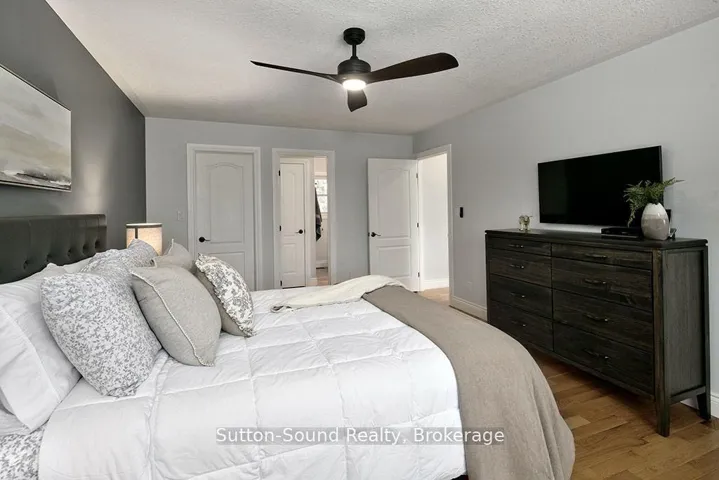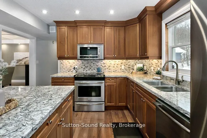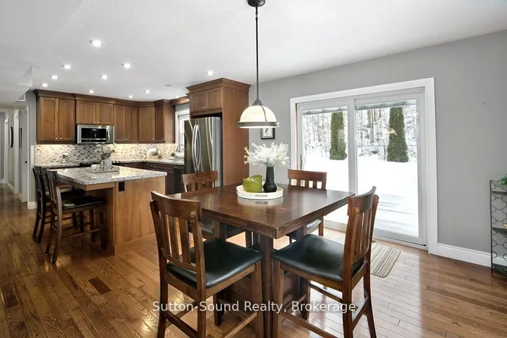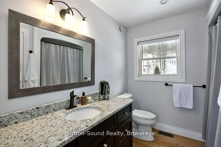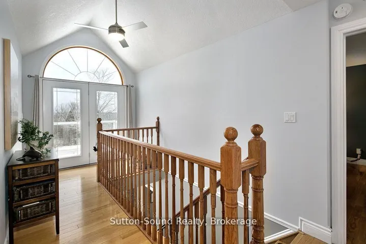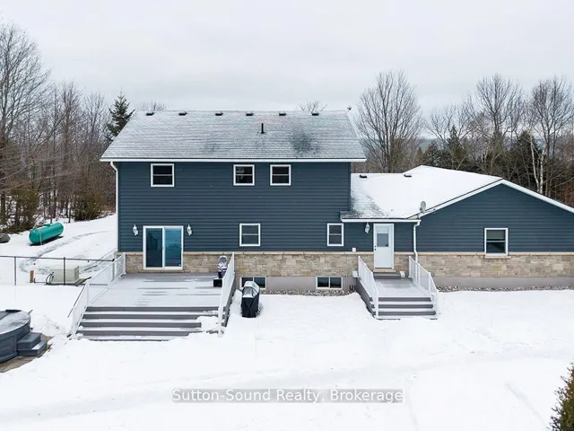 +"PublicRemarks": "CUSTOM BUILT HOME AND SHOP WITH SEASONAL VIEWS OF GEORGIAN BAY! Located on sought after Grey Rd1, close to waterfront parks, water access, hiking and desirable areas of Georgian Bluffs. This exceptional 4 bed, 4 bath executive home showcases beautiful hardwood floors, an abundance of windows and natural light and many detailed finishes. The main level offers an open concept kitchen/dining/great room with Vandolder cabinetry, quartz countertops, large breezeway entry and laundry room. The sliding doors allow direct access to composite decking, hot tub and beautifully landscaped/private backyard. Upper level offers 3 bedrooms with primary walk-in closet and ensuite and full guest bath. Upper deck is perfect for morning coffee and Georgian Bay sunrises. Lower level has 4th bed/office, 3 pc bath and finished family room. Upper and lower entrances into the house from attached garage. Separate 600 sq ft 2 bay garage/shop with extra tall overhead doors. This home is extra efficient with heat pump and full home standby generator. For the extensive list of updates, ask your realtor and book your showing!"