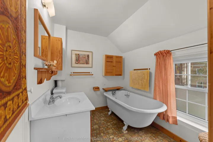 +"PublicRemarks": "A truly special find in Kingston's historic Sydenham Ward! This charming 1 1/2 storey 'urban cottage' is loaded with character. Exposed wood beams, a floating staircase, hardwood floors, new vinyl windows and thoughtful architectural details throughout. Ideal for professionals, downsizers, or anyone seeking a home with personality and walk-ability. This home features 2 bedrooms, one full bathroom with claw foot tub and an inviting layout. The fenced courtyard offers a private outdoor retreat and the detached single-car garage provides rare convenience in this sought-after neighbourhood. Steps to Queens, downtown, hospitals, and the waterfront. this home perfectly blends historic charm with modern urban living."